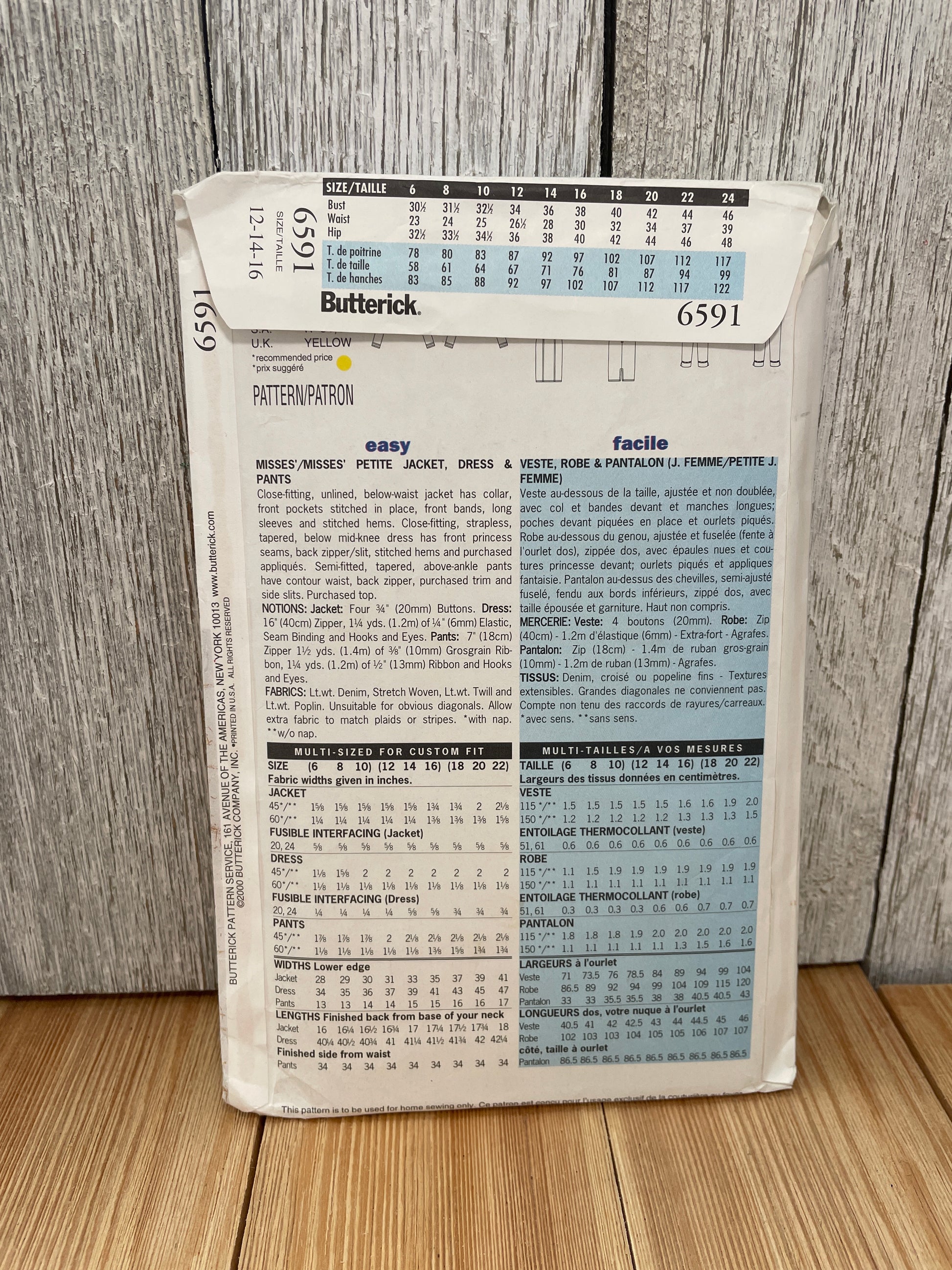 Butterick 6591 Misses Petite Denim Jacket Dress Pants Sizes 12-16 Uncut FF Sewing Pattern
