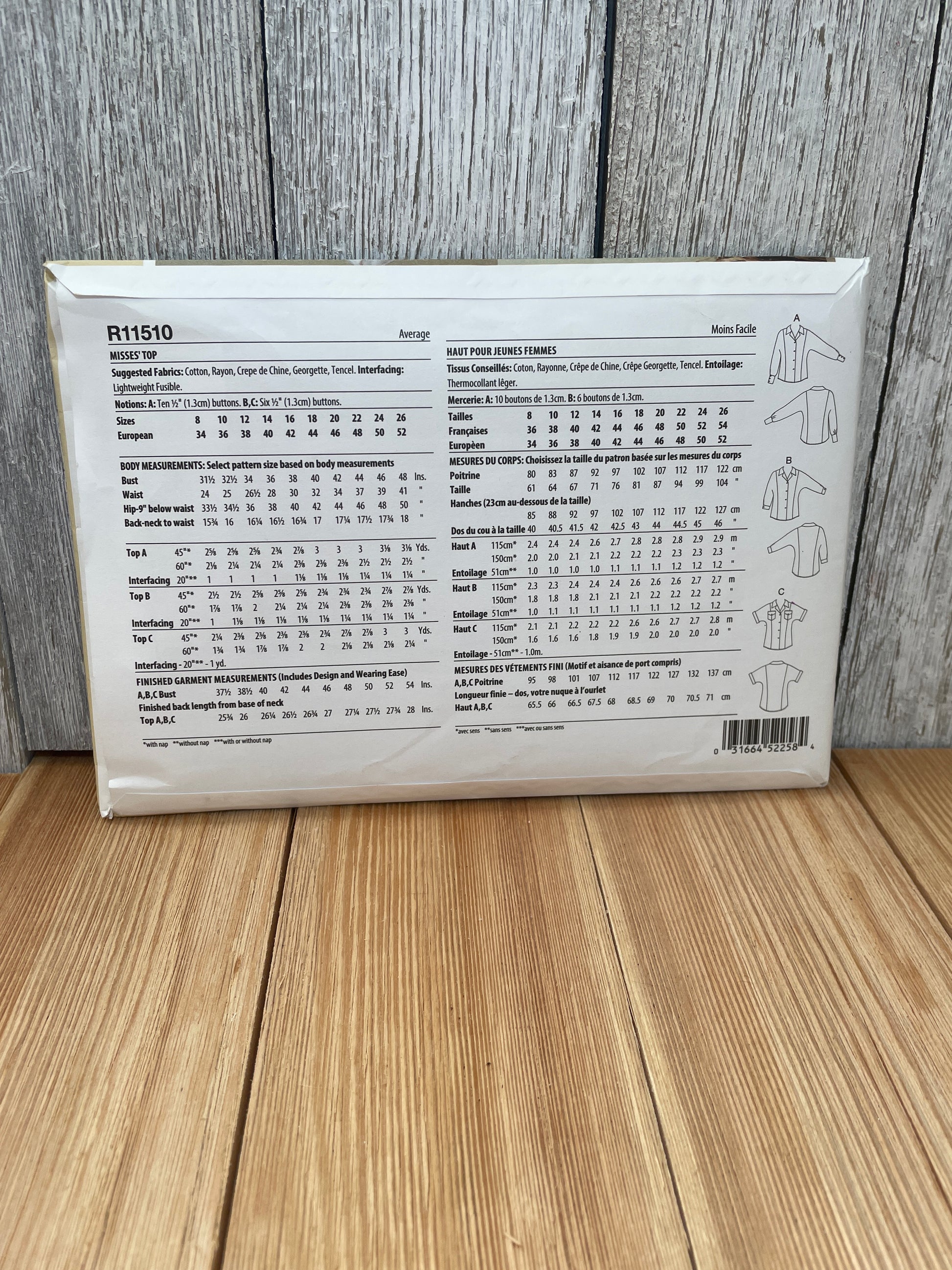 Butterick R11510 (11510) Misses Button Up Top Sizes 8-16 Uncut FF Sewing Pattern