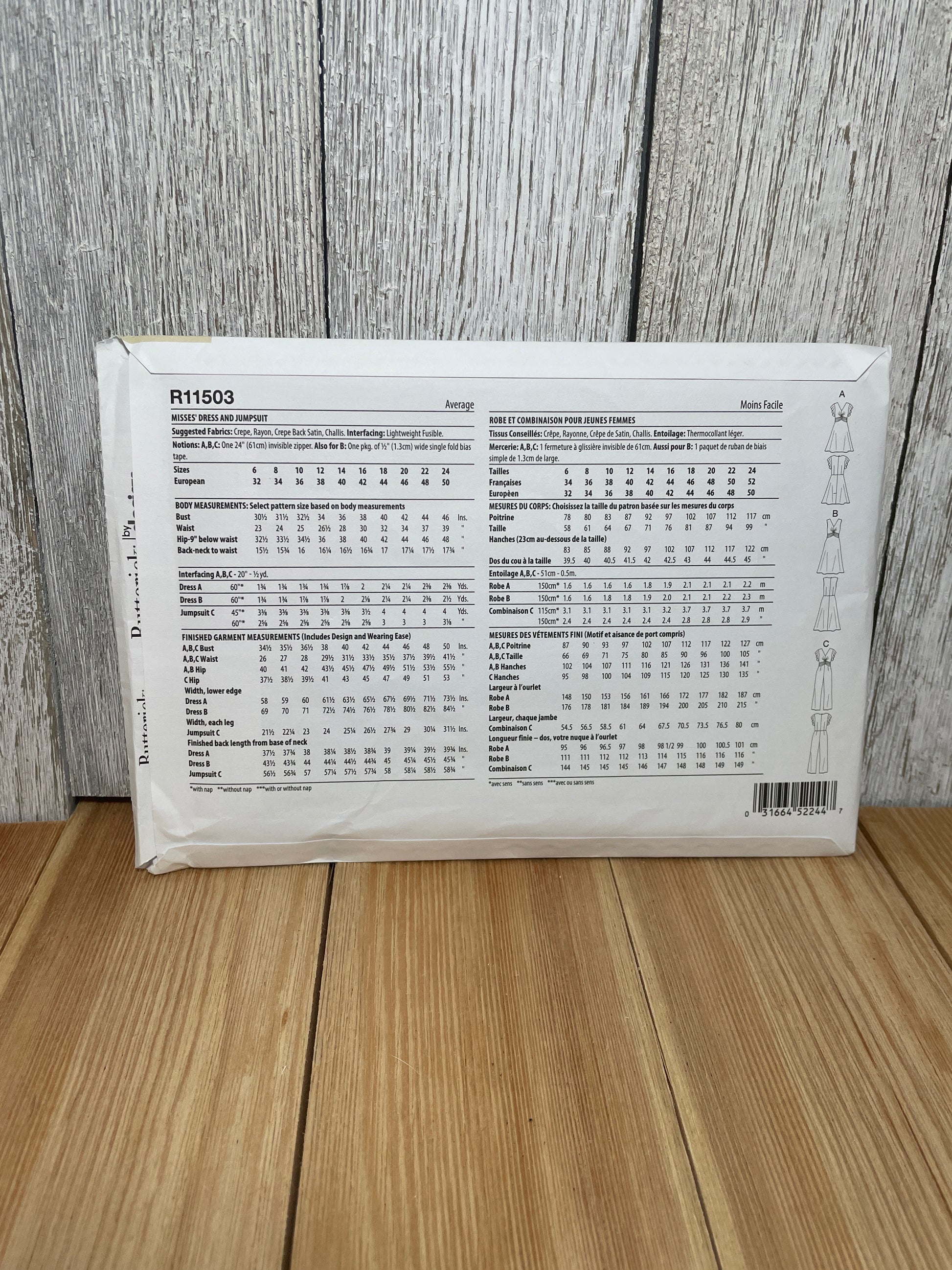 Butterick R11503 (11503) Misses Dress with Flutter Sleeves Jumpsuit Size 6-14 Uncut FF Sewing Pattern