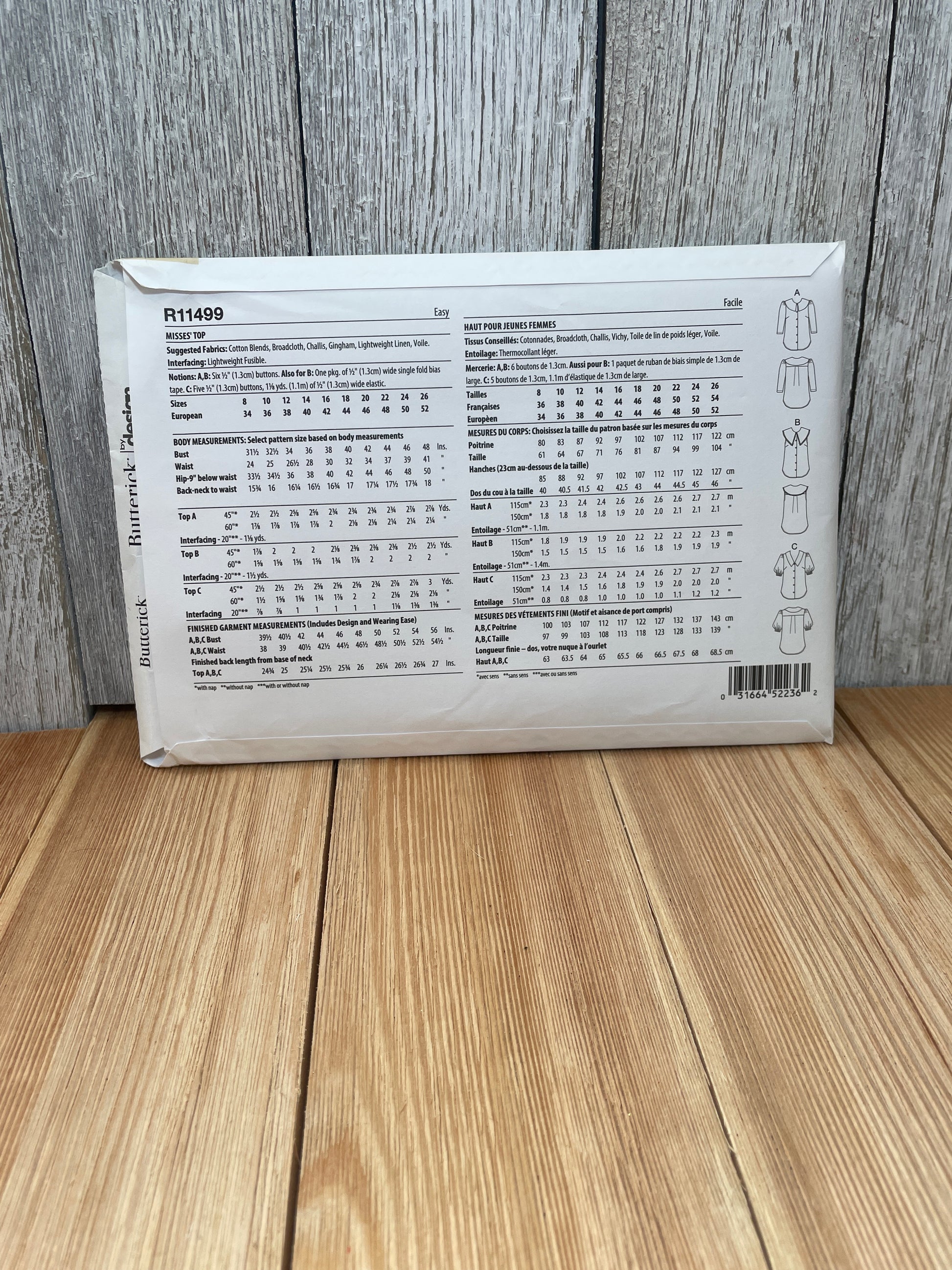 Butterick R11499 (11499) Misses Top with Peter Pan Collar Size 18-26 Uncut FF Sewing Pattern
