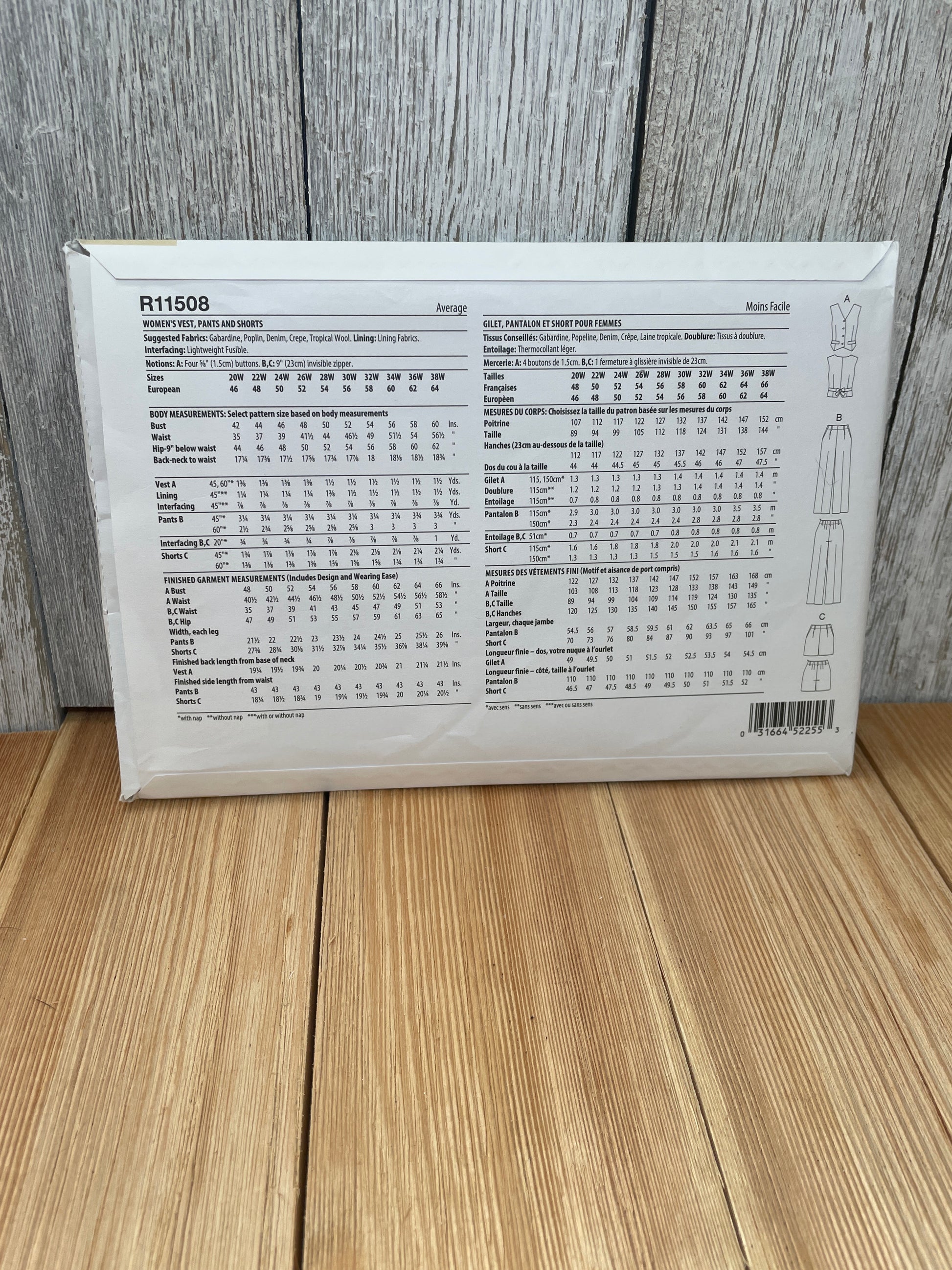 Butterick R11508 (11508) Women Vest Pants Shorts Size 30W-38W Uncut FF Sewing Pattern