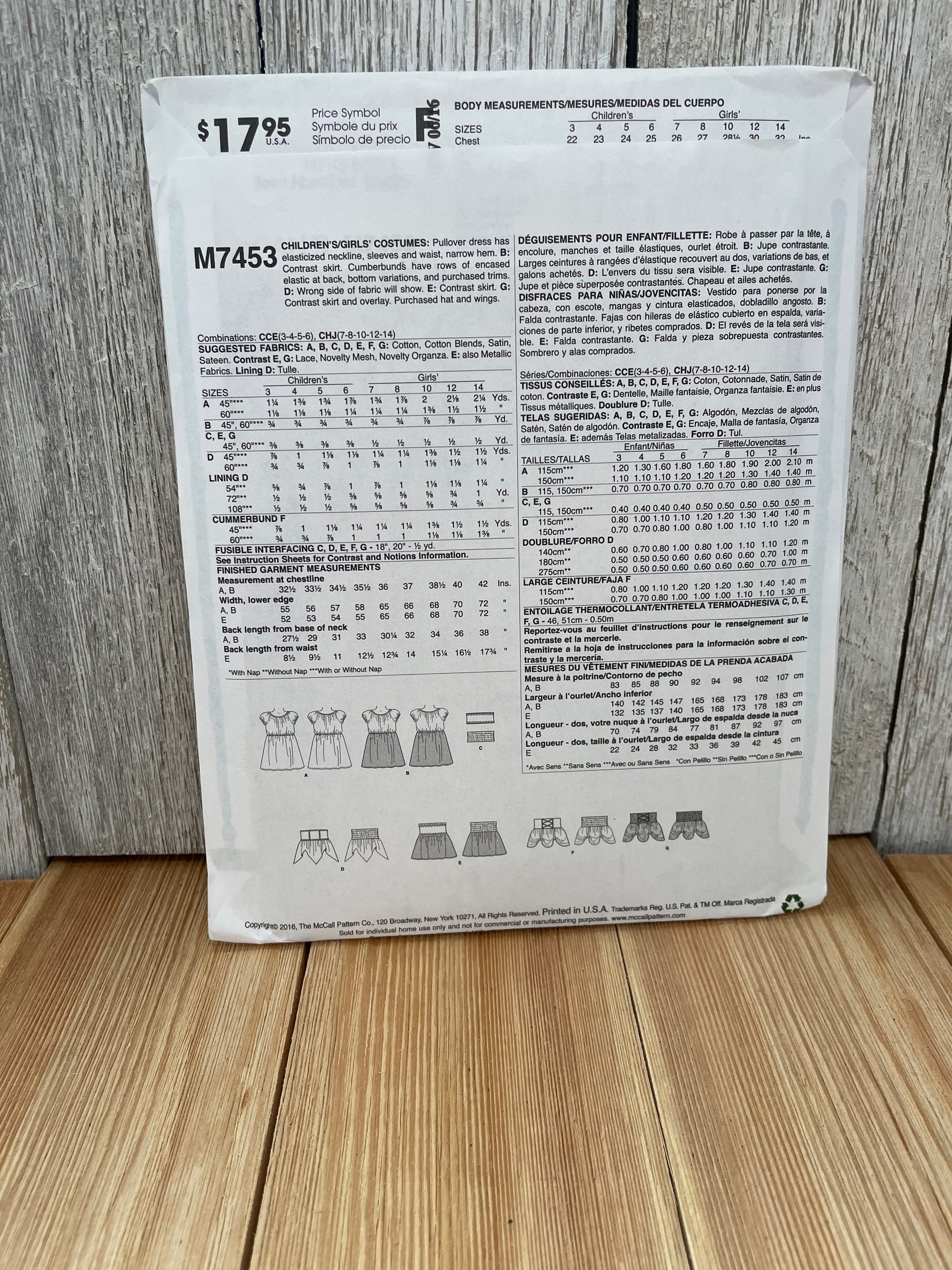 McCall's M7453 (7453) Child Size 3-6 Fairytale Angel Halloween Costume Uncut FF Sewing Pattern princess fairy tale pirate witch fairy goth cummerbund dress skirt sash