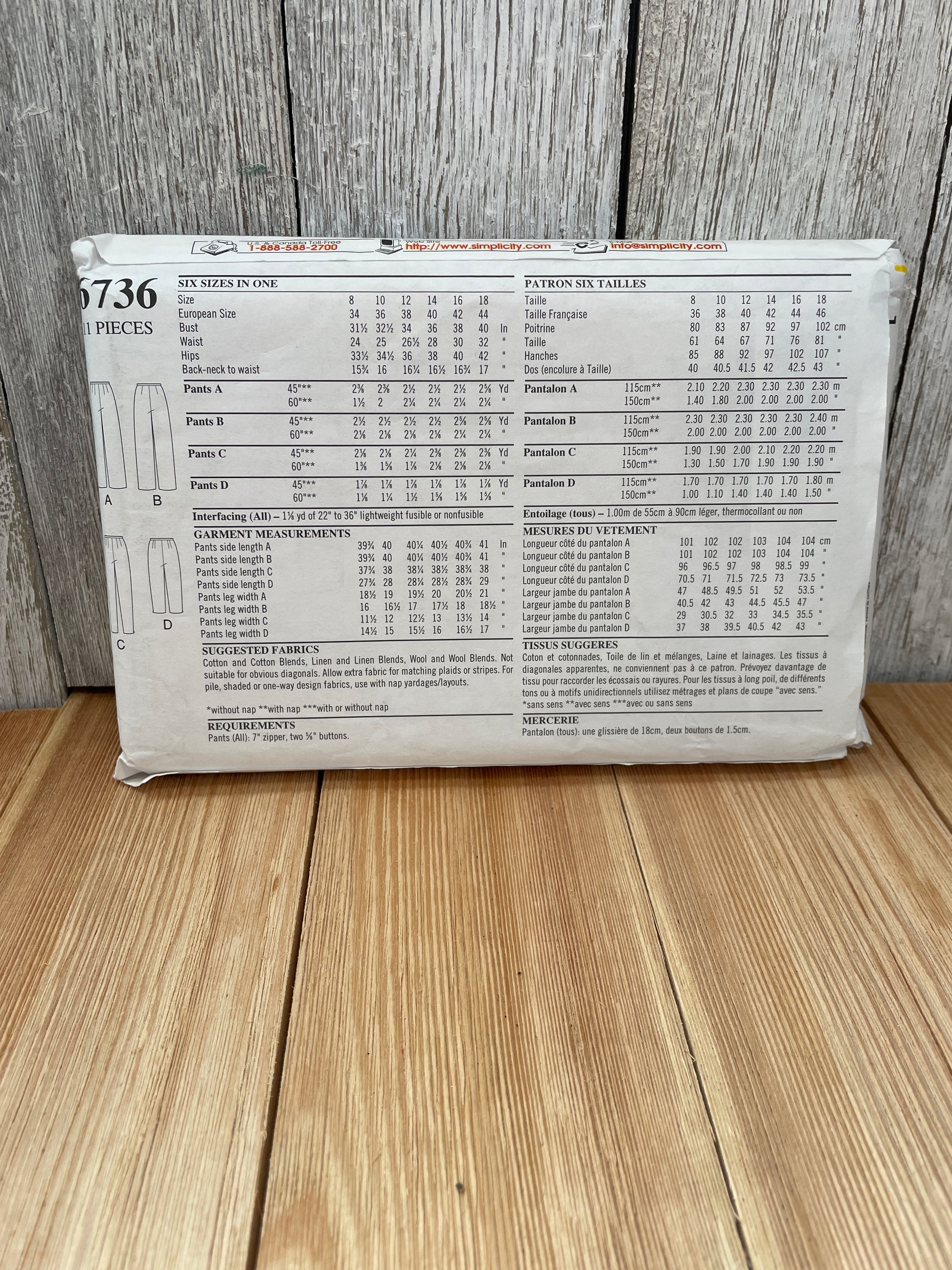 New Look 6736 Misses Pleated Pants Size 8-18 Sewing Pattern FF Uncut