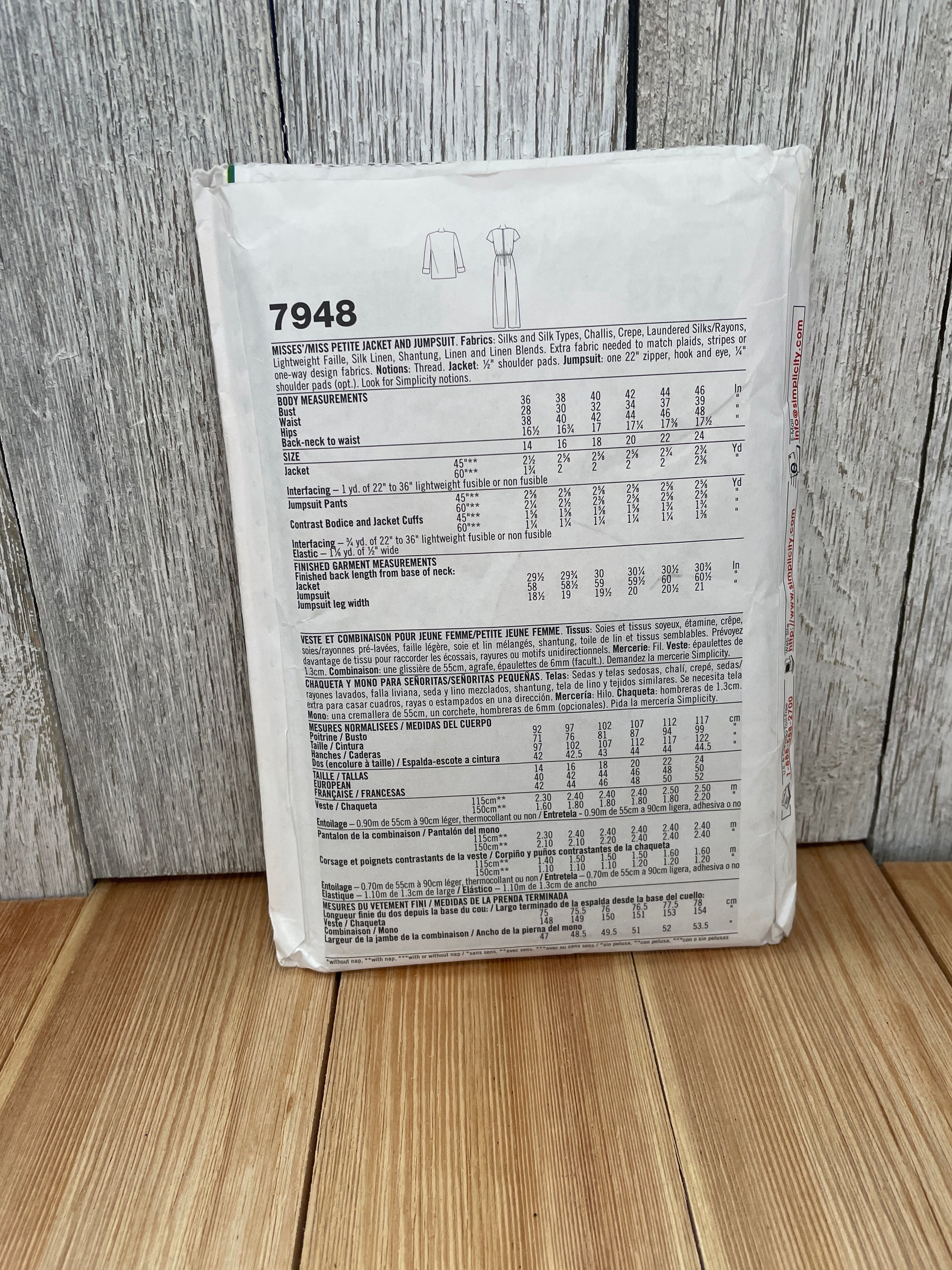 Simplicity 7948 Misses Petite Jacket & Jumpsuit Size 14-24 Uncut FF Sewing Pattern