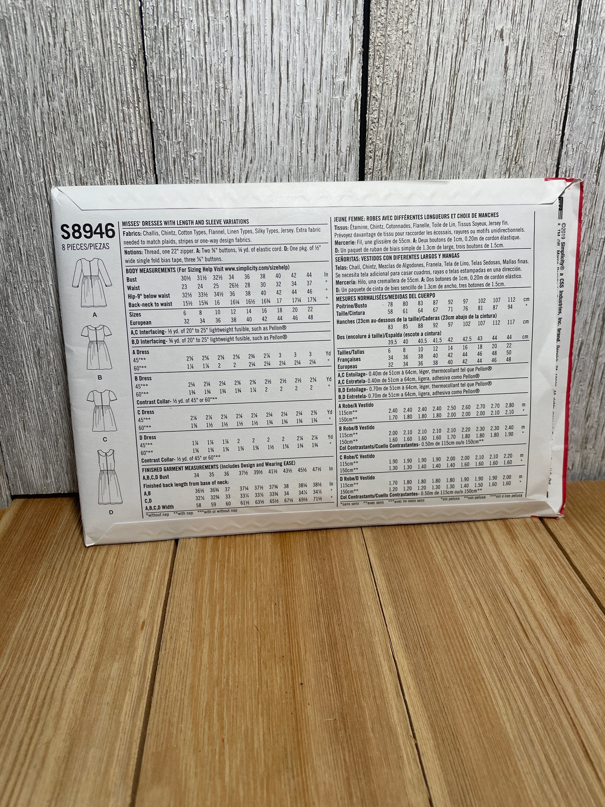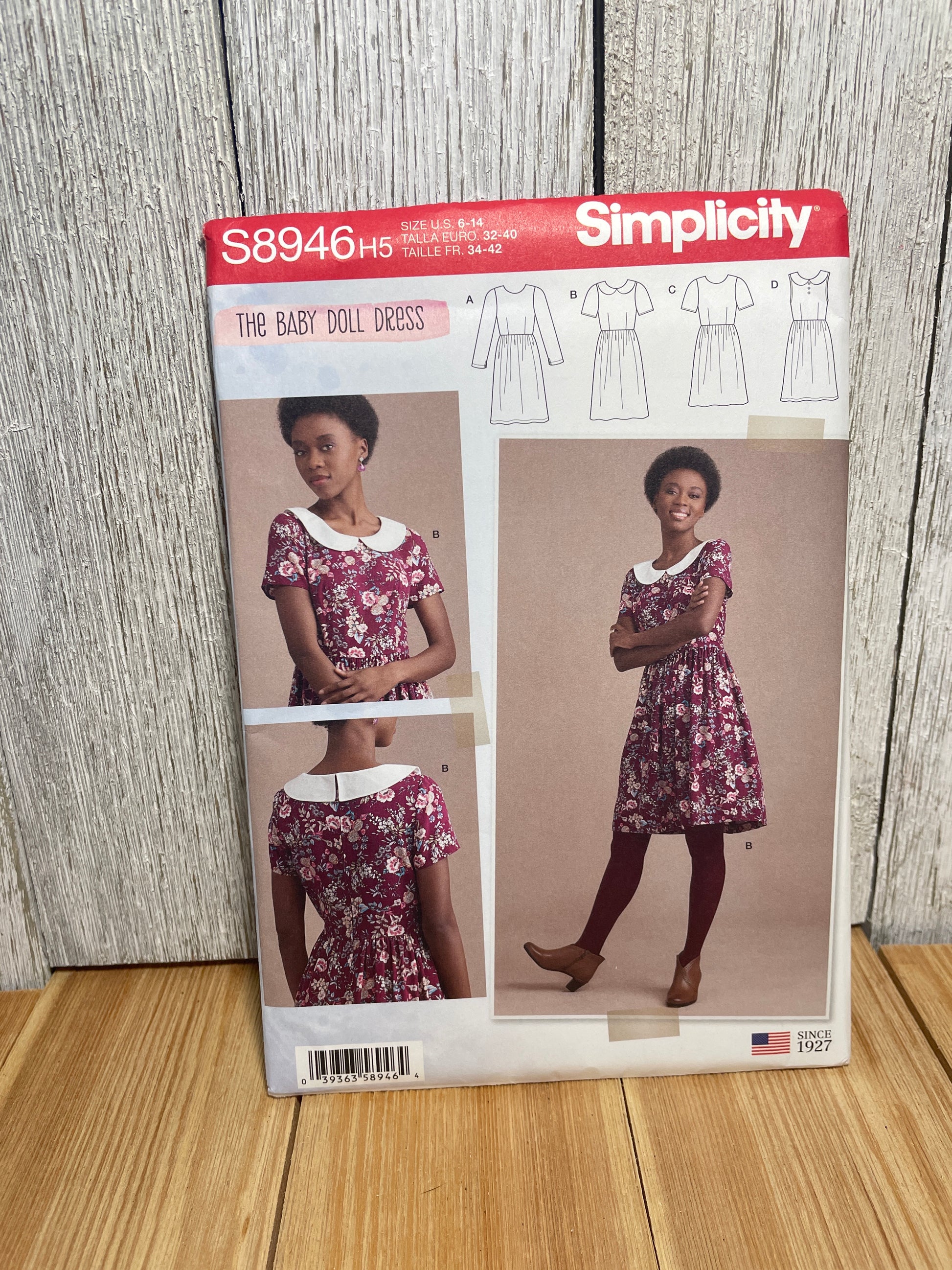 Simplicity S8946 (8946) Misses Baby Doll Dress with Peter Pan Collar Size 6-14 Uncut FF Sewing Pattern misses The Baby Doll Dress with length and sleeve variations