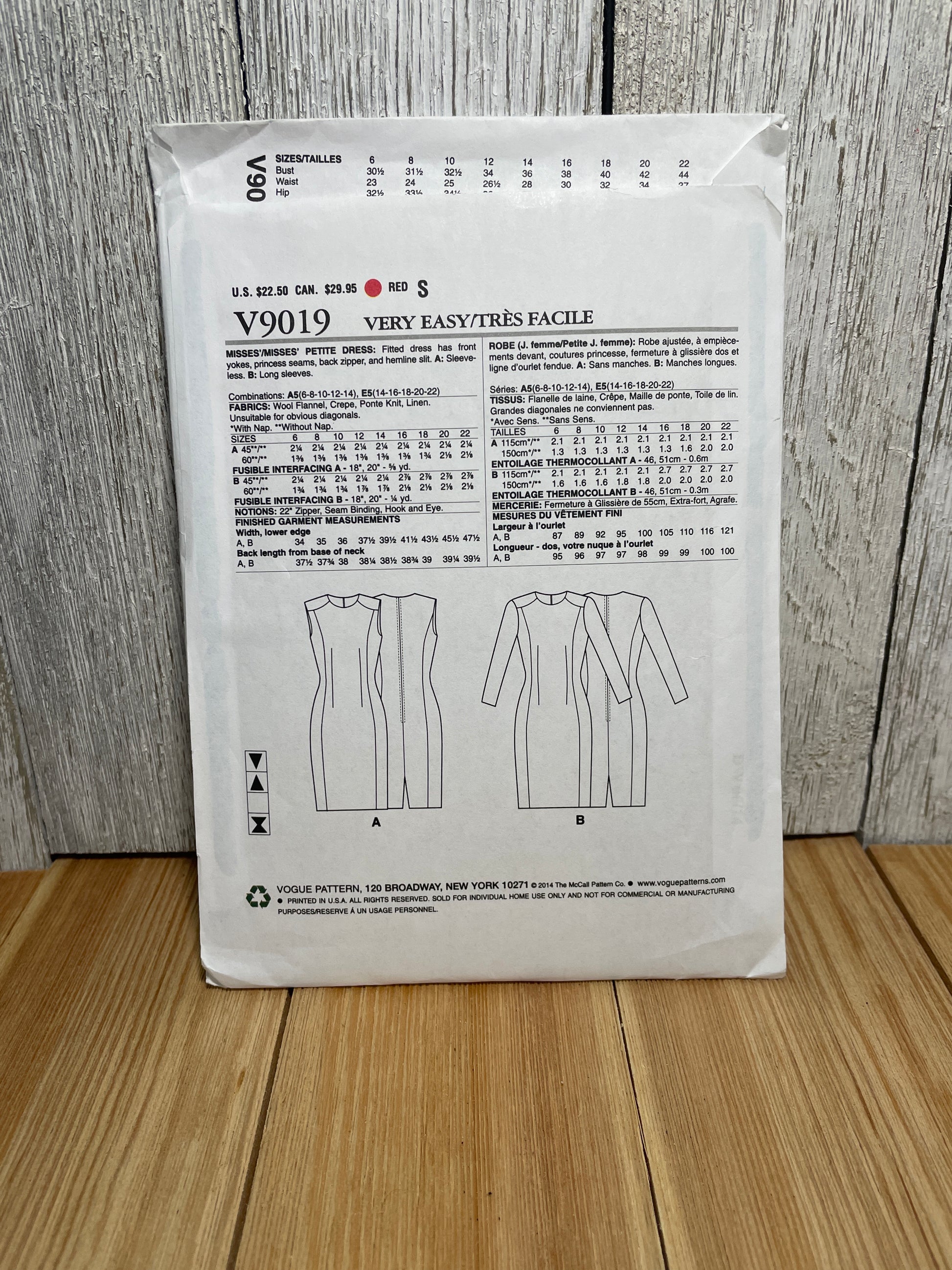 Vogue V9019 (9019) Misses Petite Princess Seams Dress Sizes 6-14 Uncut FF Sewing Pattern