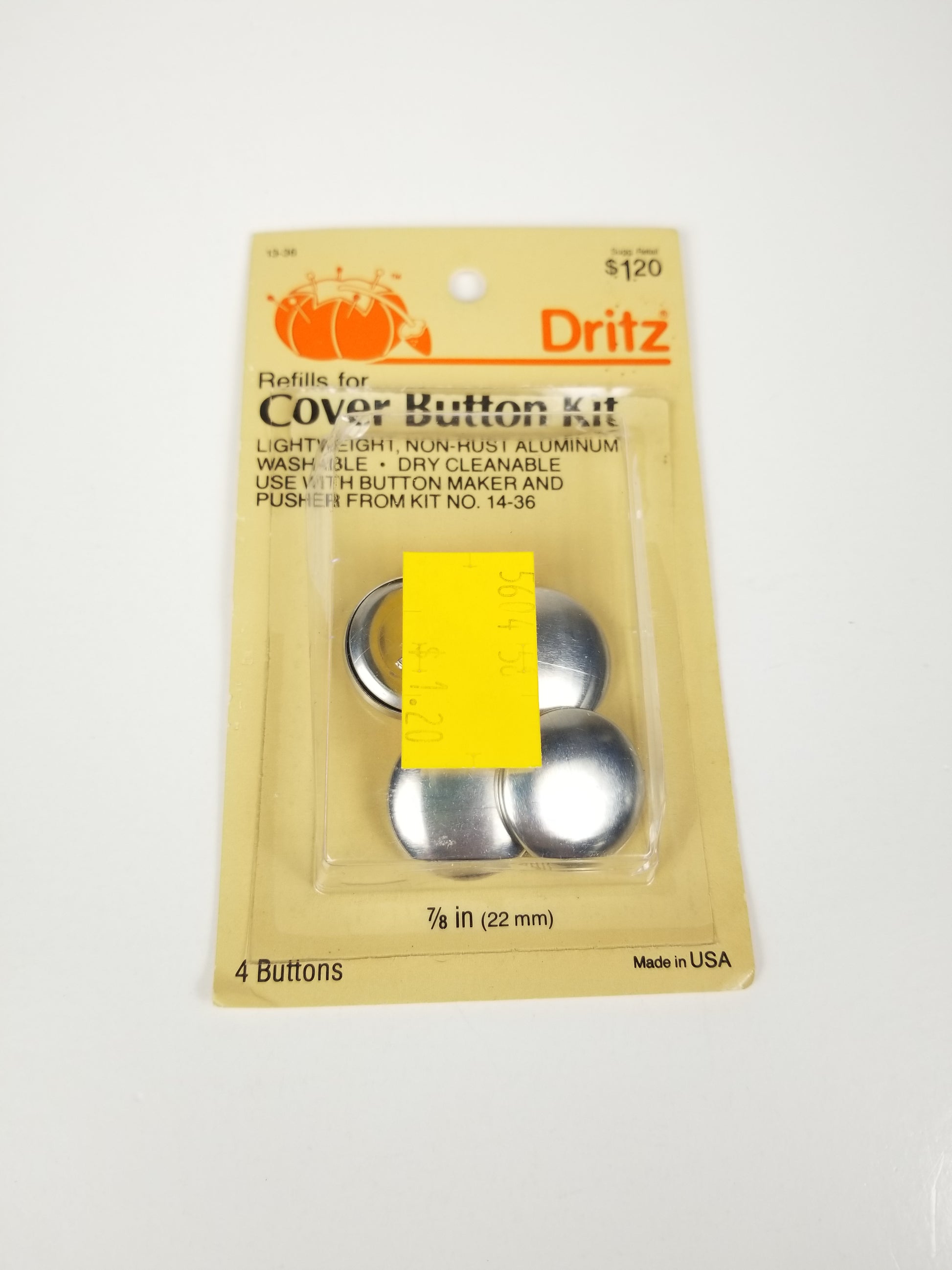 4 buttons Dritz sealed package of refills for Button Cover Kit. 7/8 in (22mm)