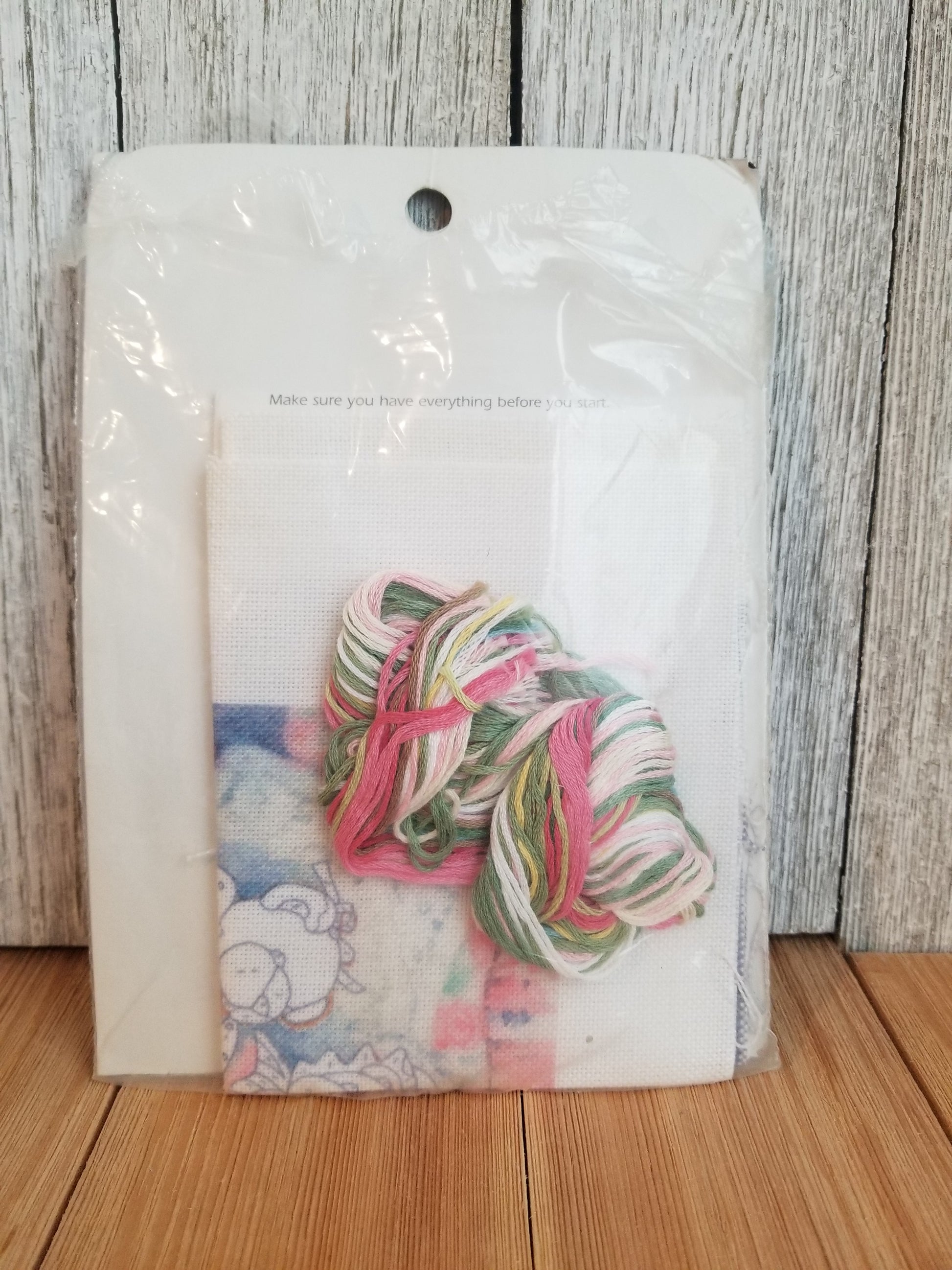 Kit includes Cotton Embroidery Thread, Design printed in full color on white homespun, Needle, Pattern and Instructions