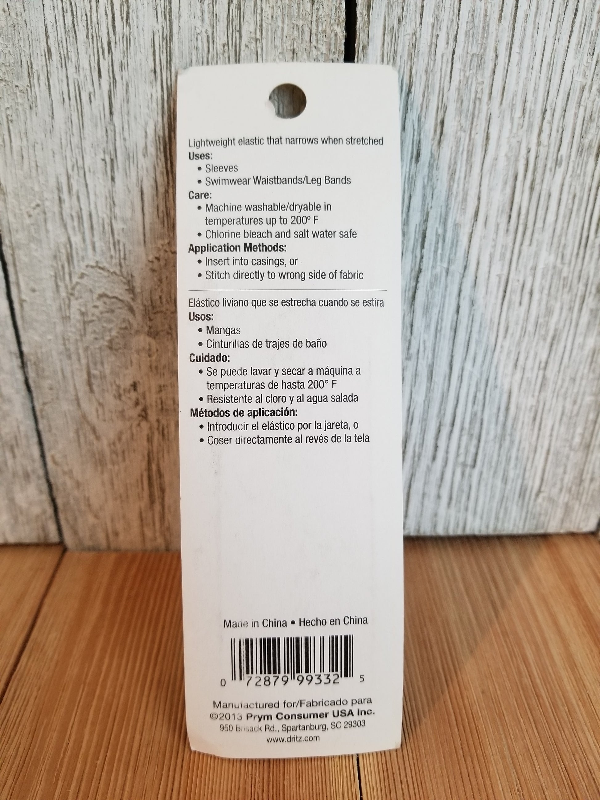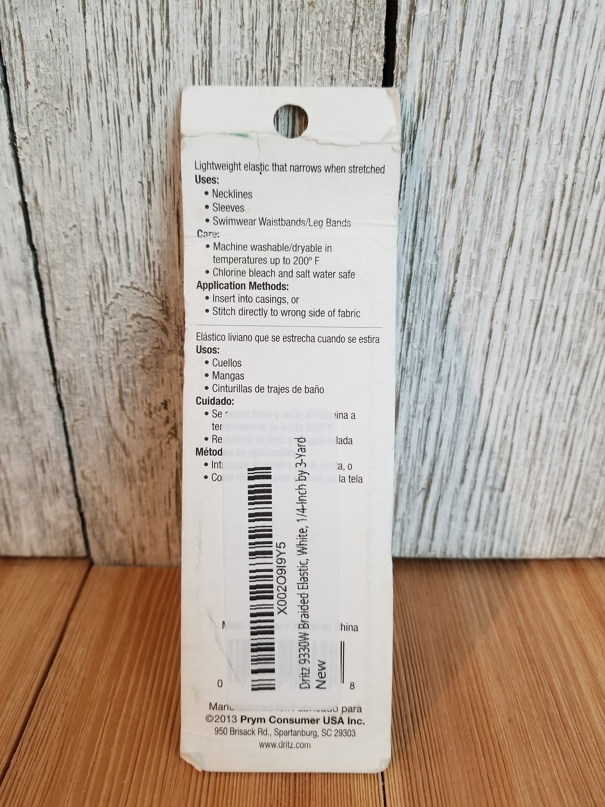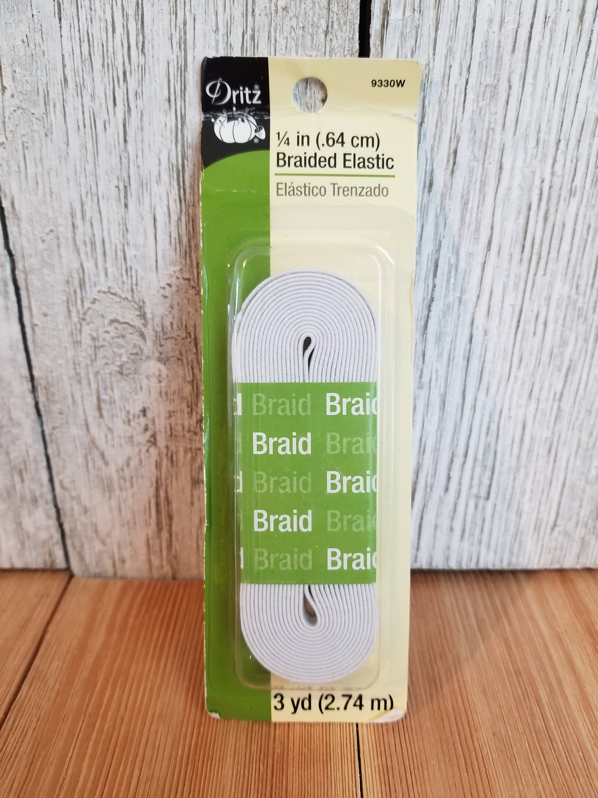 Dritz 1/4" x 3 yards white braided lightweight elastic that narrows when stretched
