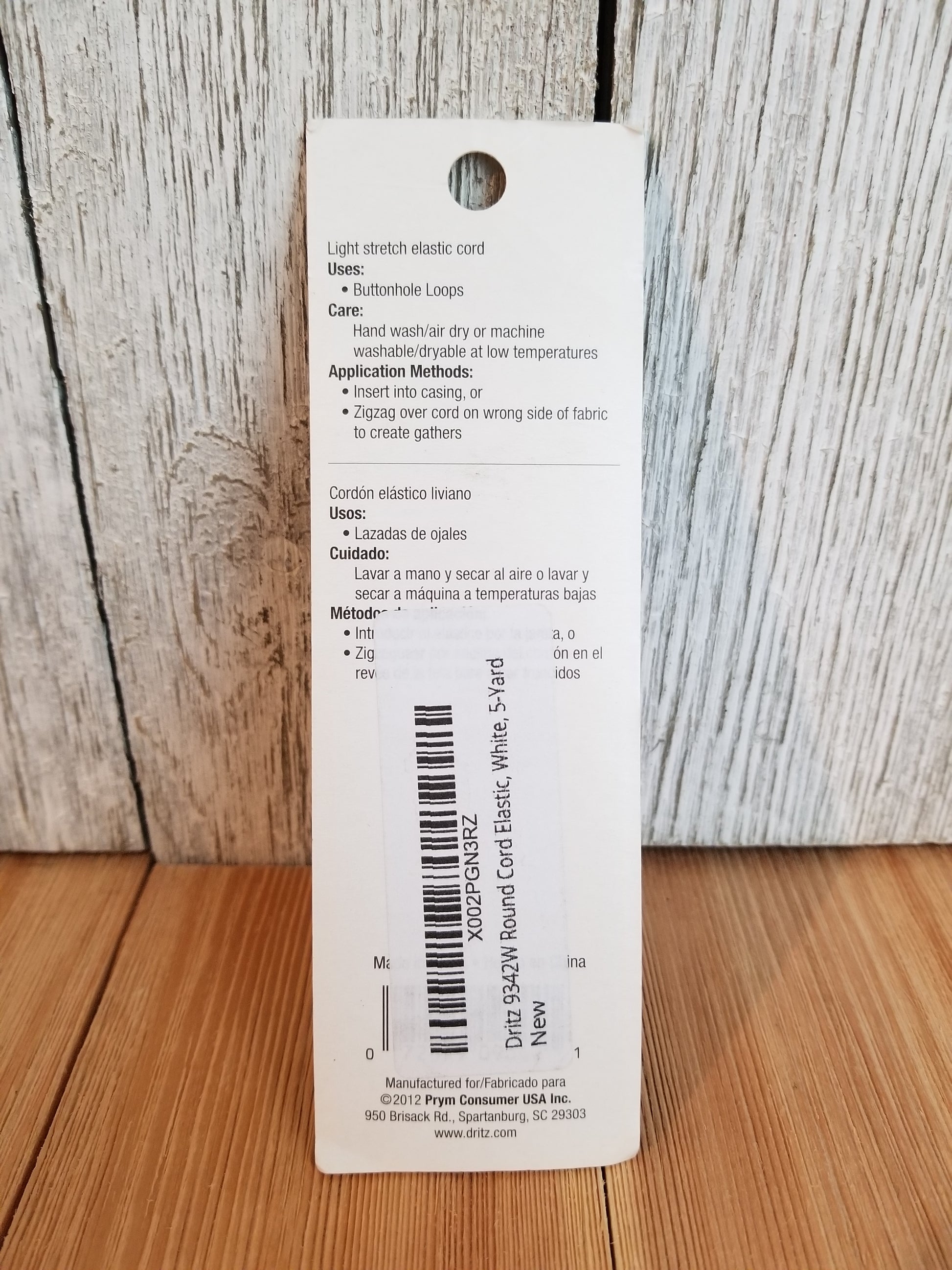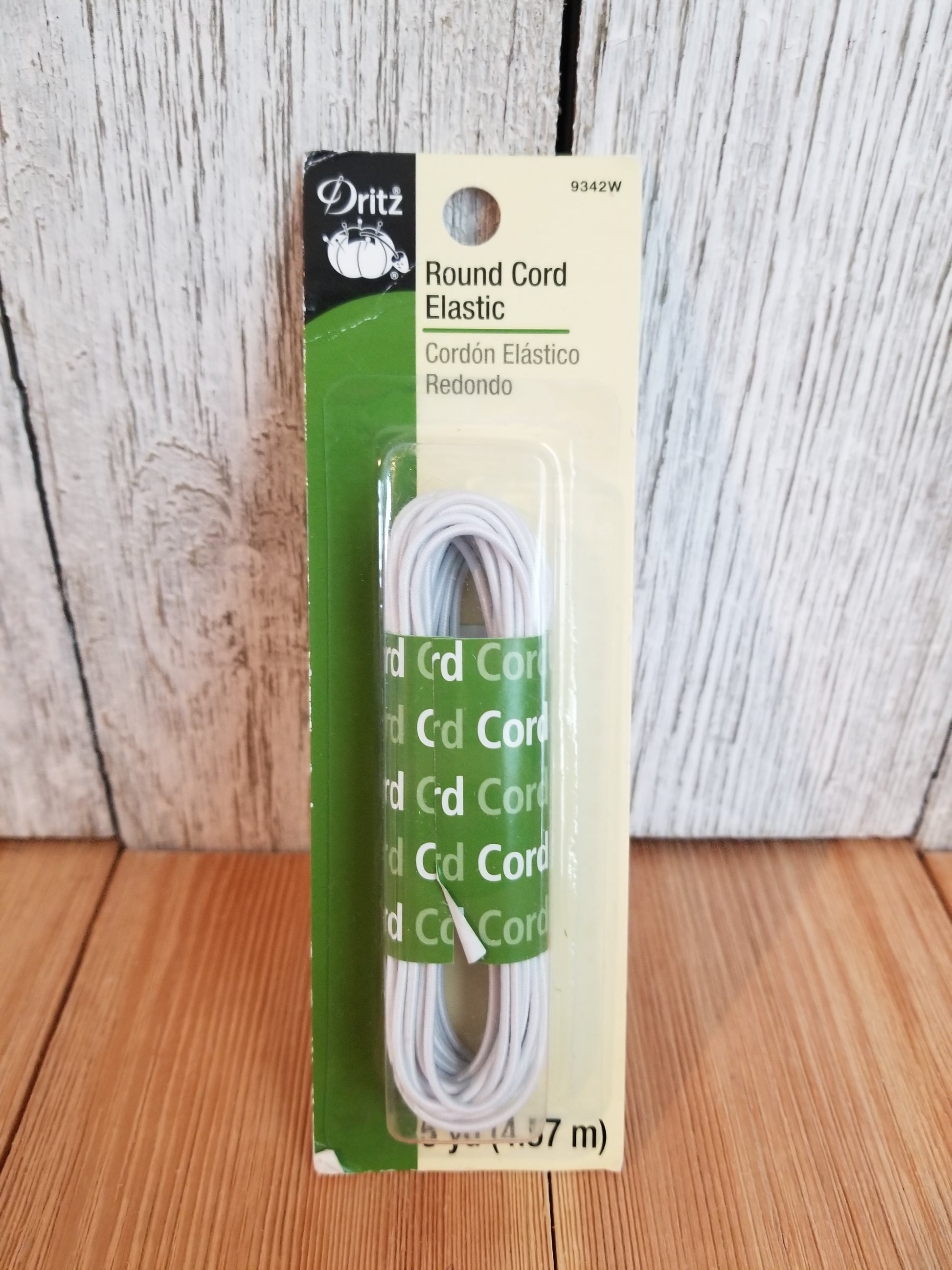 Dritz 5 yards, round cord elastic, white, light stretch elastic cord - buttonhole loop