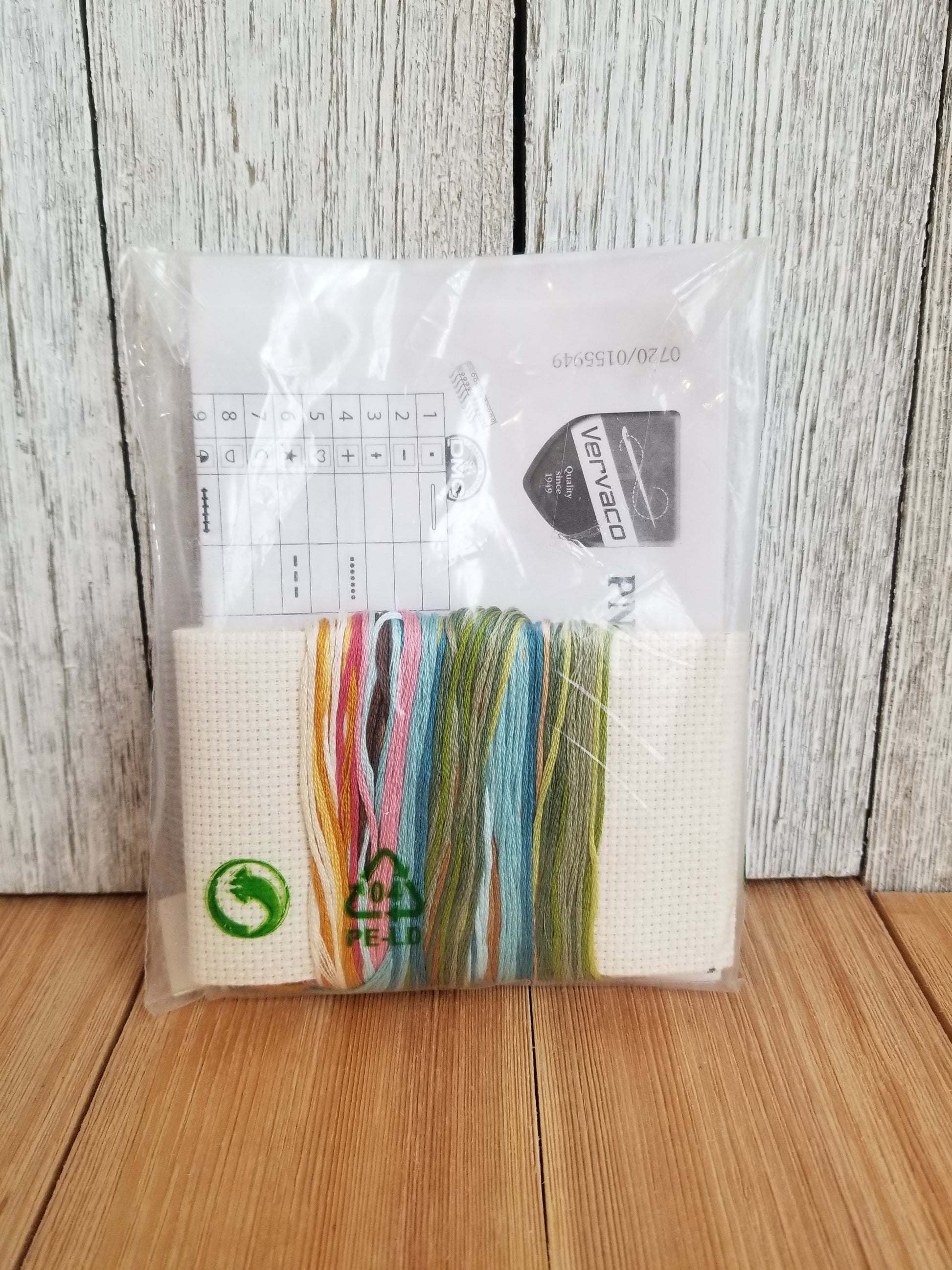 Kit includes 14 Ct. Ivory Aida, floss, needle, and instructions for 2 bookmarks