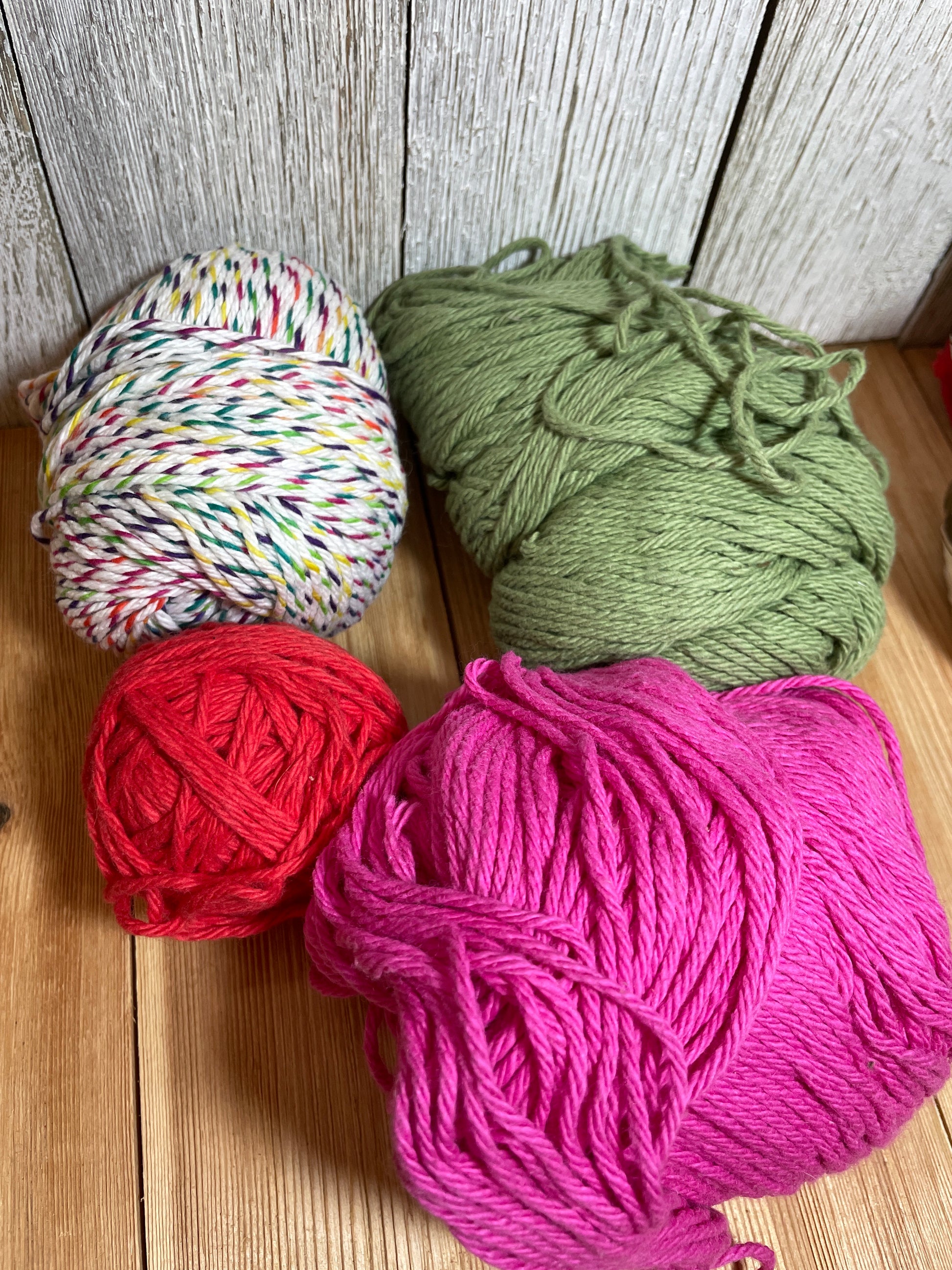 Green cotton, pink cotton, rainbow white cotton all without label