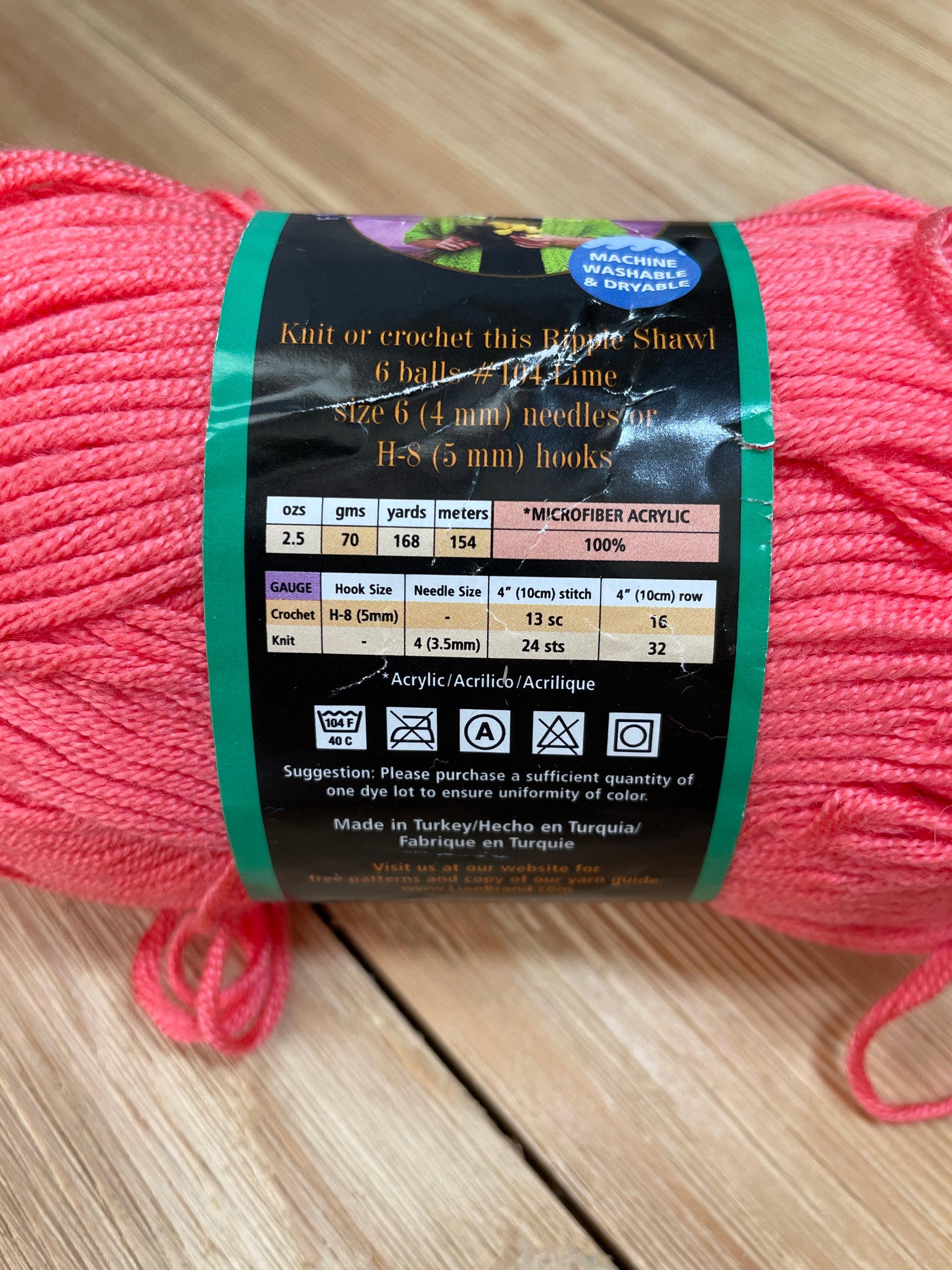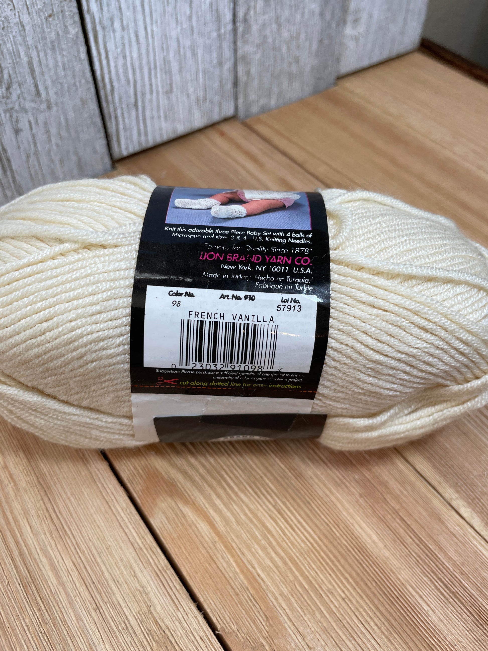 Lion Brand Micro Spun Sport Weight Yarn Coral, French Vanilla, Turquoise, Leaf (U Pik Color) Pink, White, Green, Blue