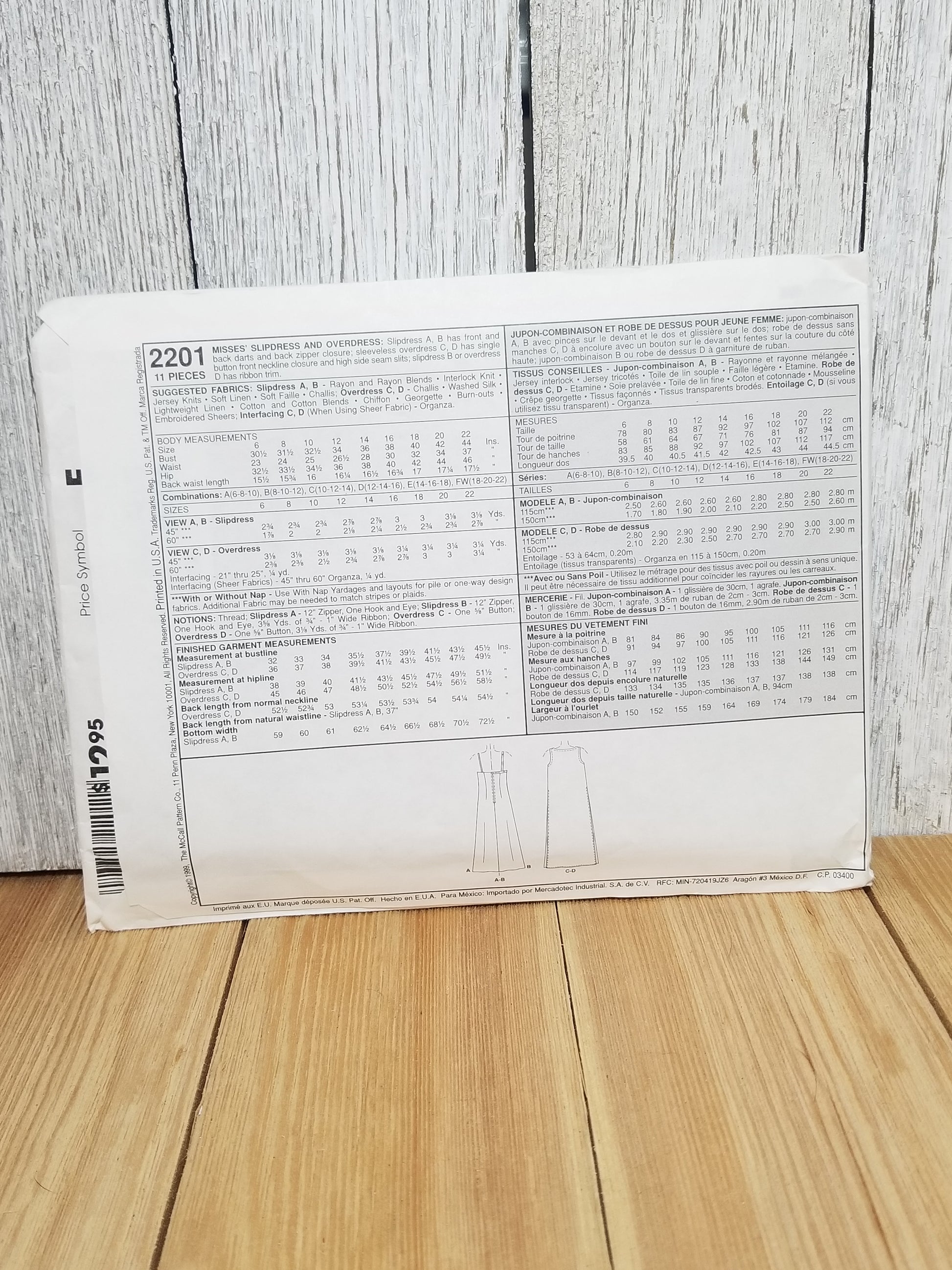 McCall's 2201 Misses Slipdress Overdress Size 6-10 Uncut FF Sewing Pattern Petit-able