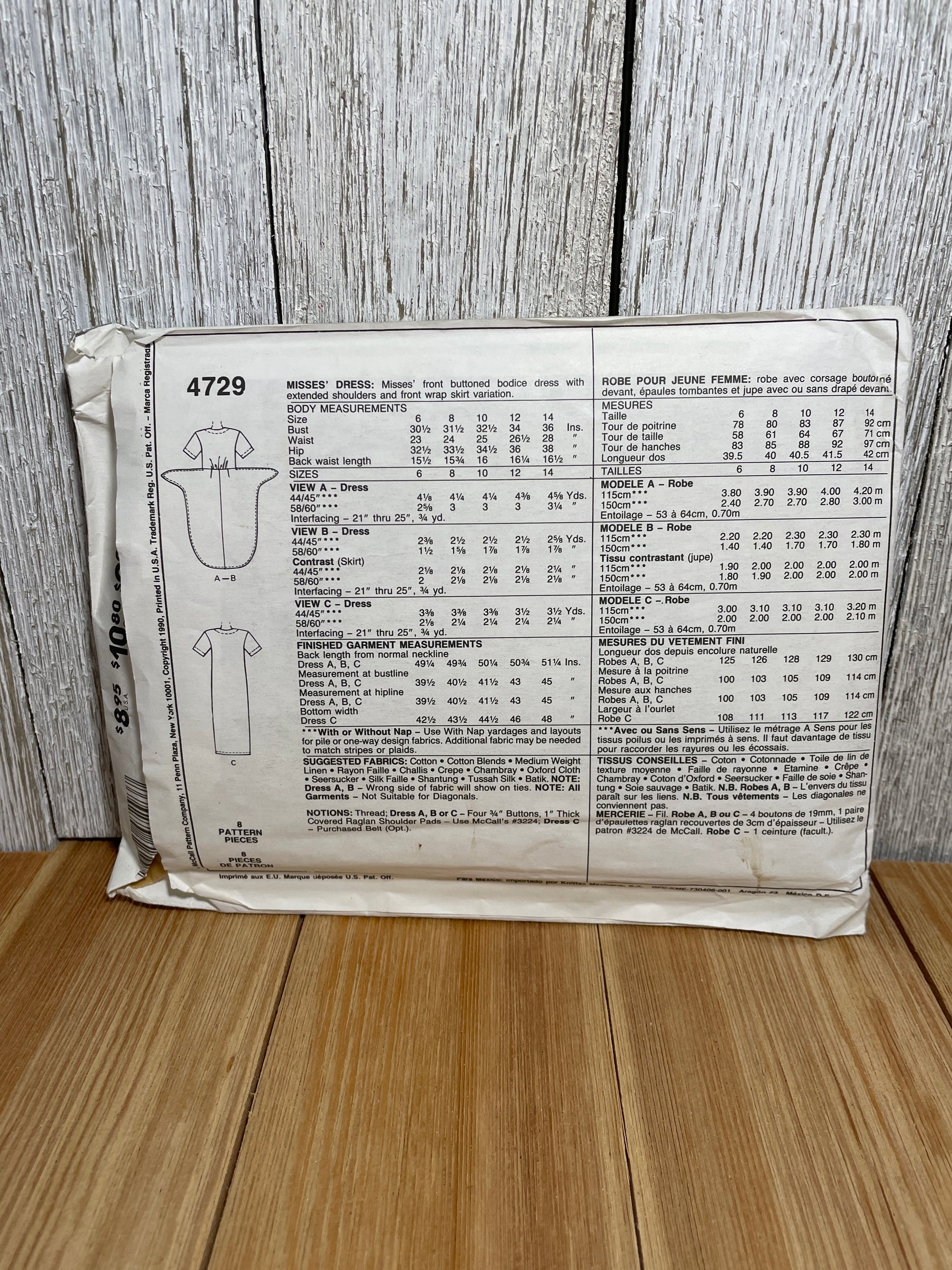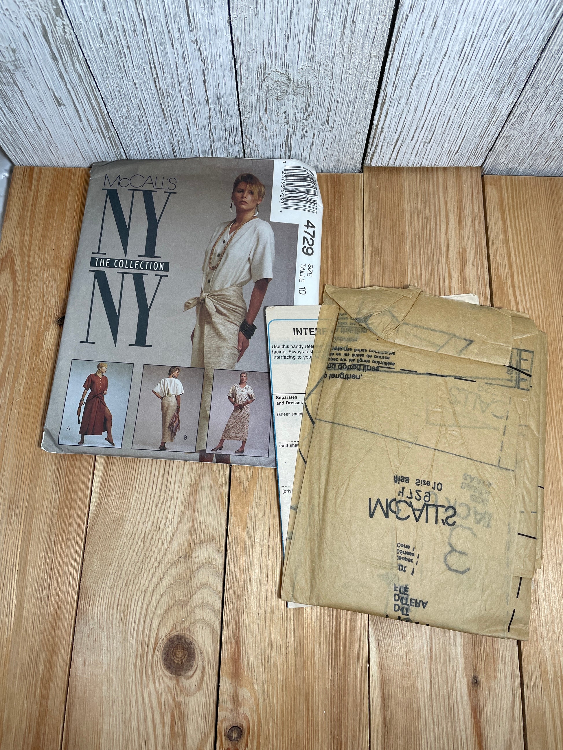 McCall's 4729 Buttoned Bodice Dress Wrap Style Skirt Dress Size 10 Pattern Uncut FF