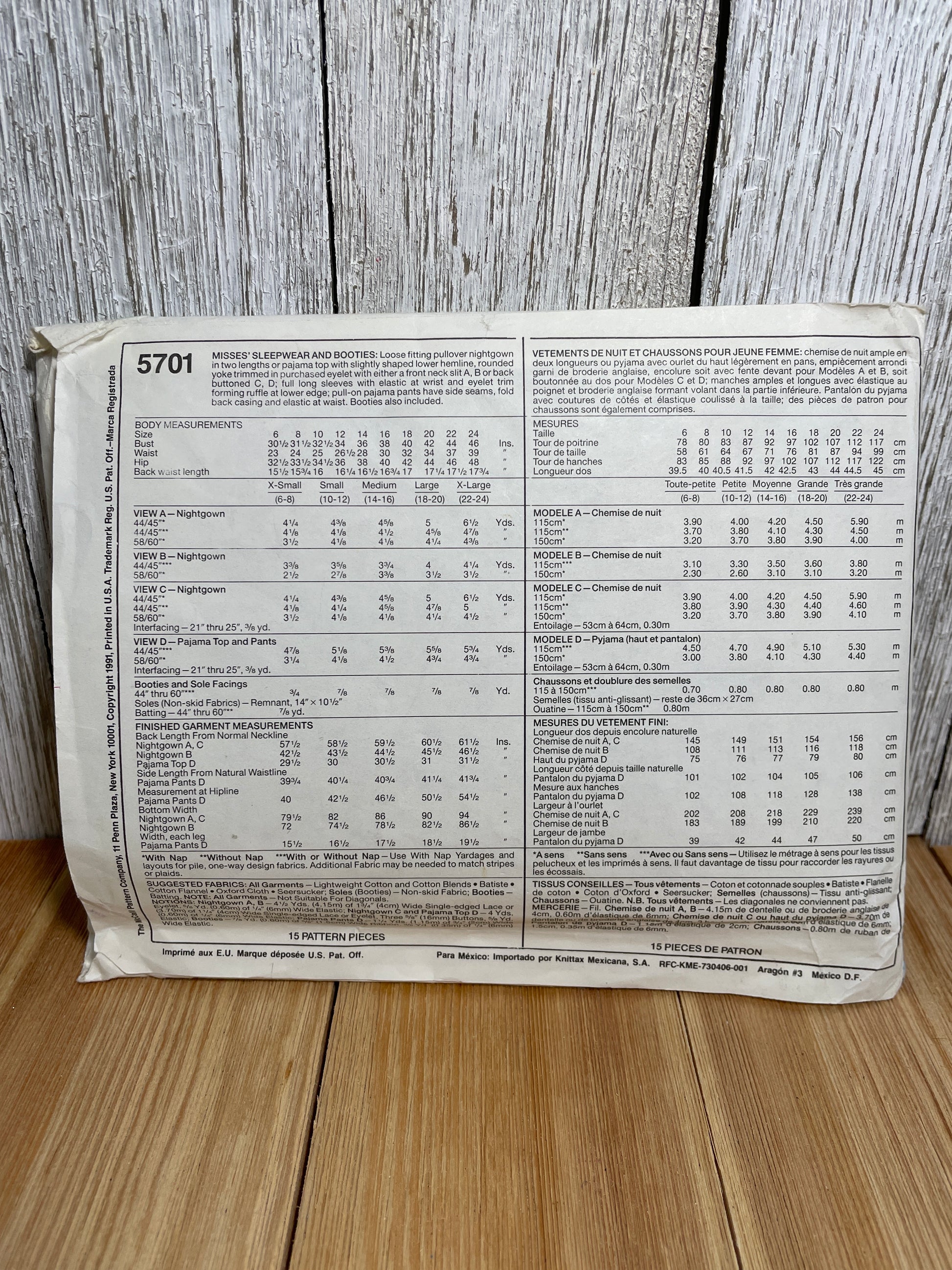 McCalls 5701 Large Yoke Lose Fit Sleepwear Dress Shirt Pants and Boots Size 6-8 Pattern Uncut FF Lang of Salsburg