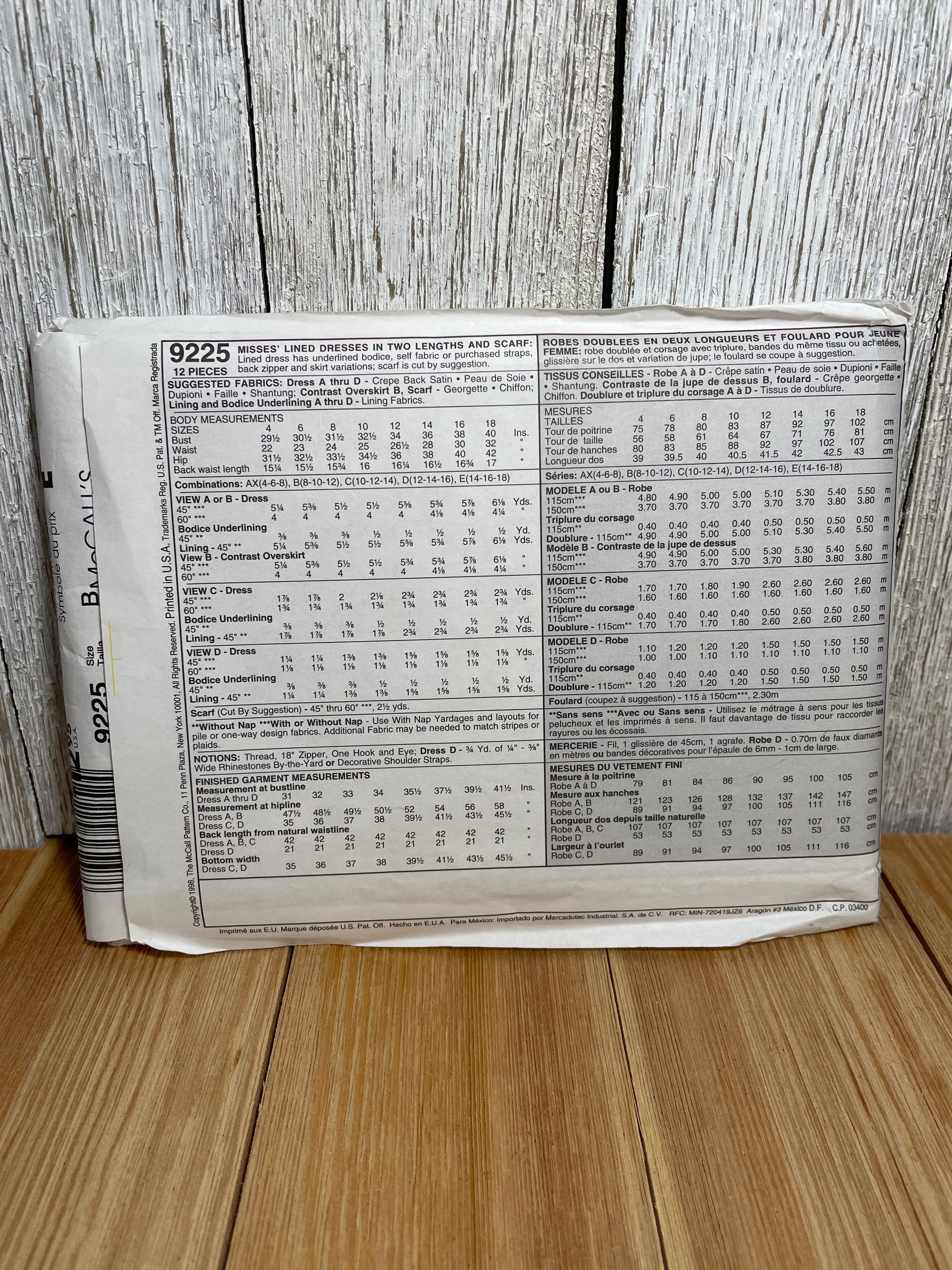 McCalls 9225 Evening Elegance Fit and Flair Satin Dress Size 8-12 Pattern Uncut FF