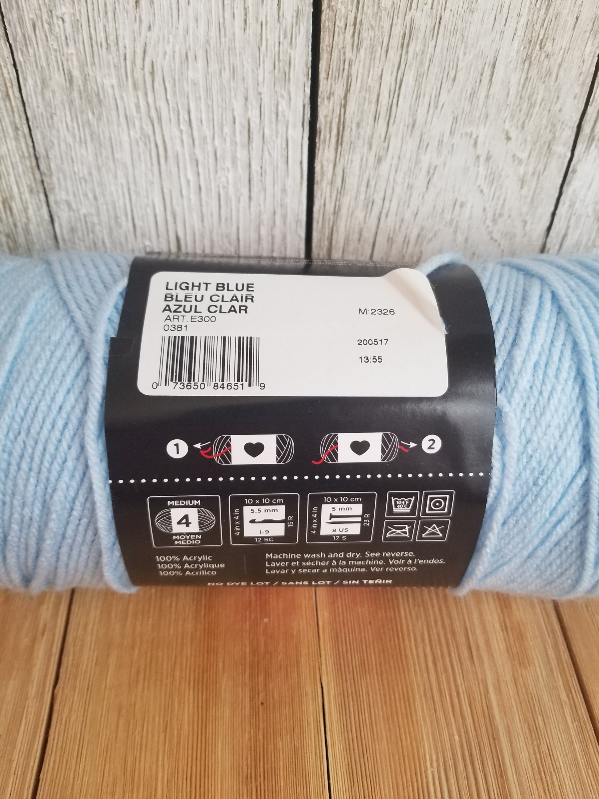 100% Acrylic, Medium Weight (#4) Worsted Yarn, Easy middle start.