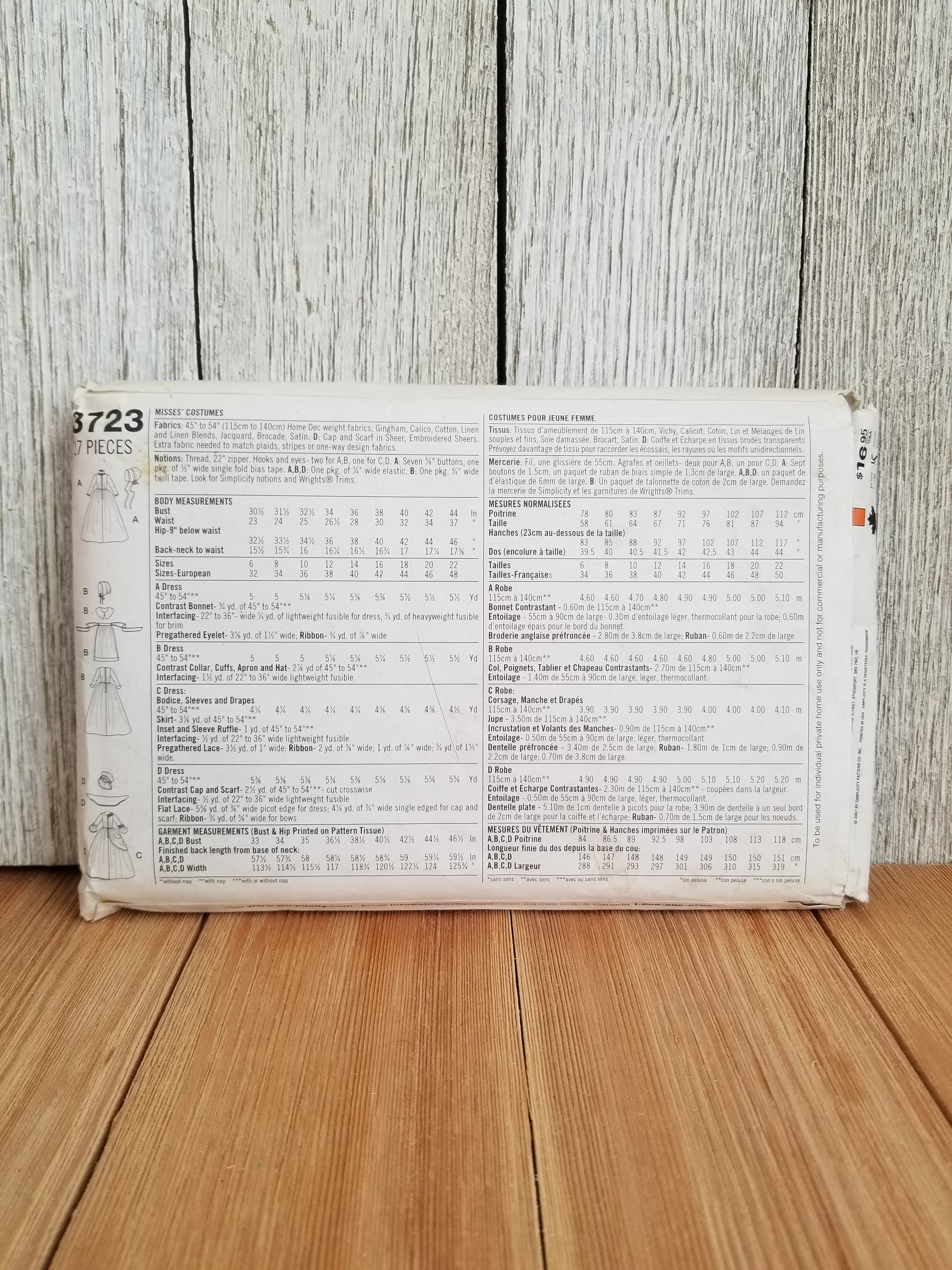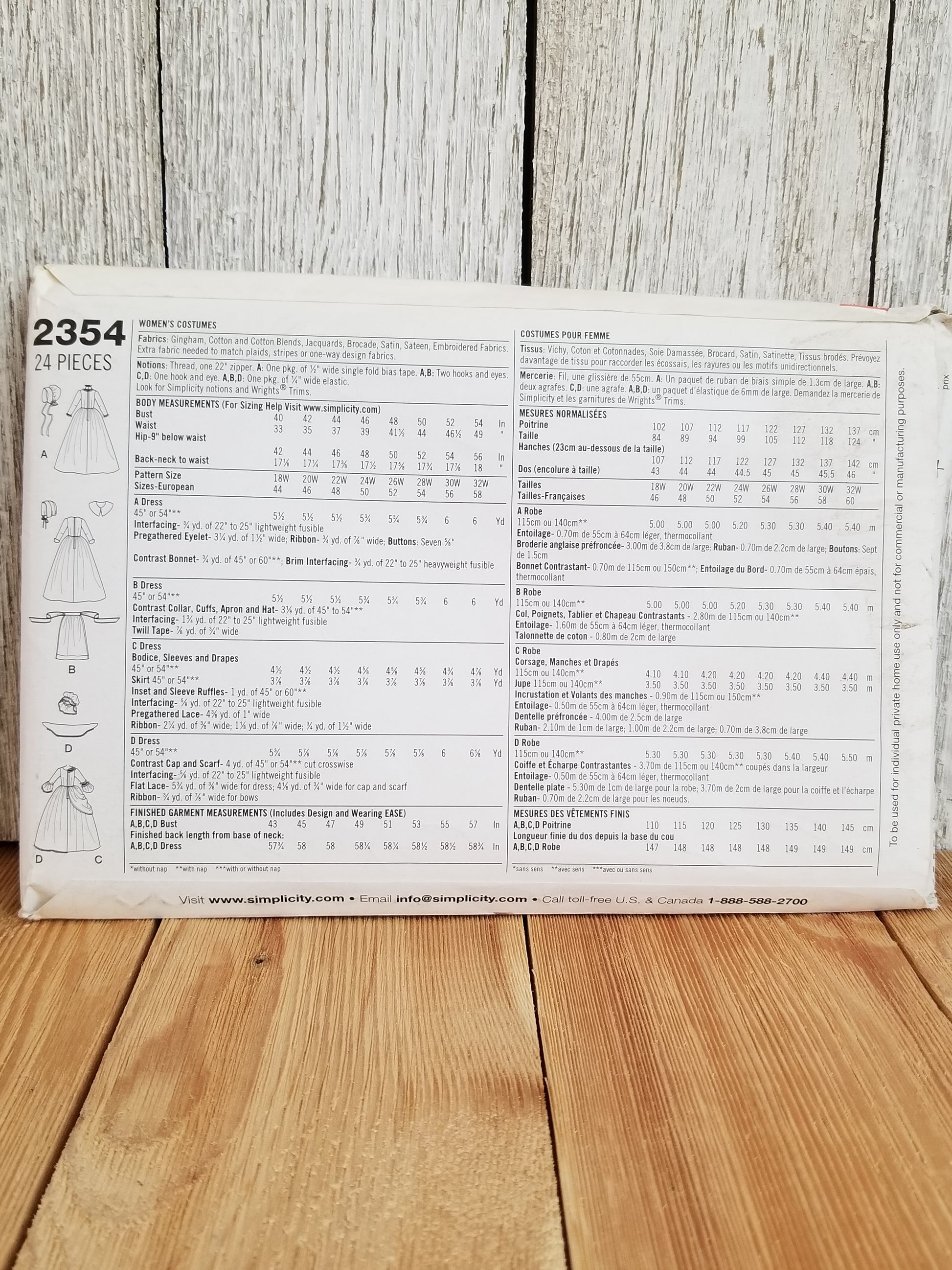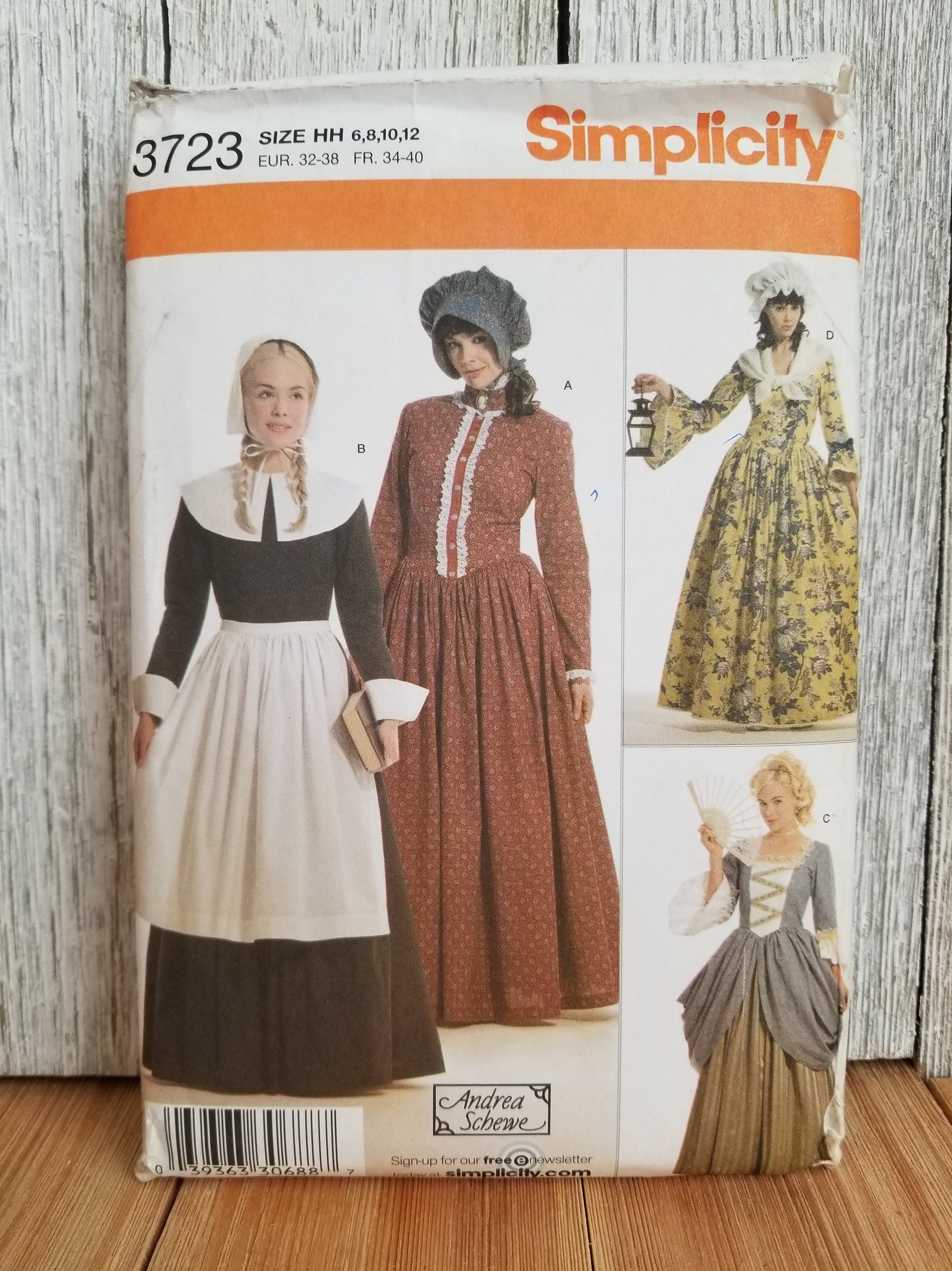 Simplicity 2354 3723 Pioneer Medieval Pilgrim Halloween Costumes Pattern Size GG 26W-32W HH 6-12 R5 14-22 UNCUT FF