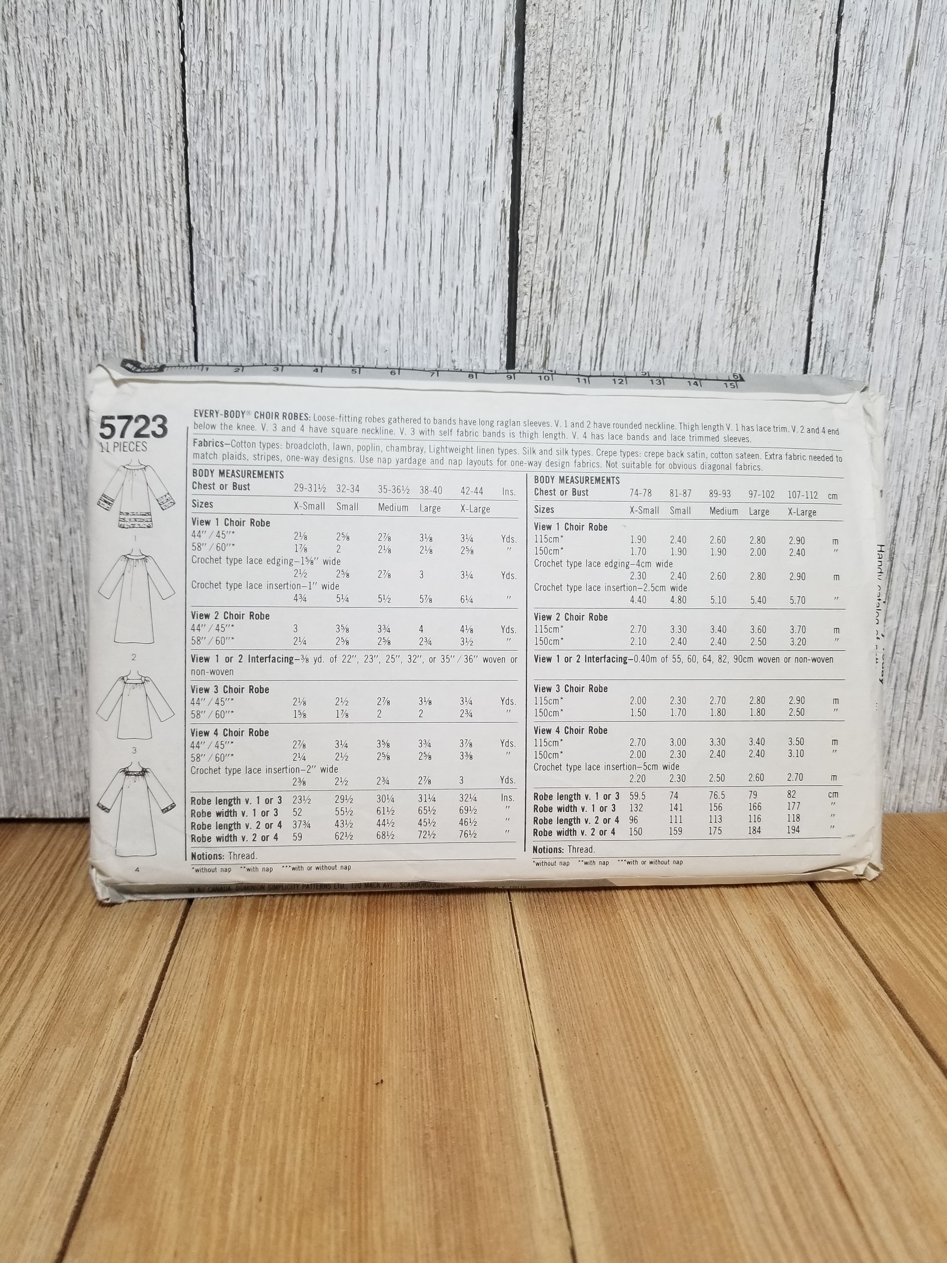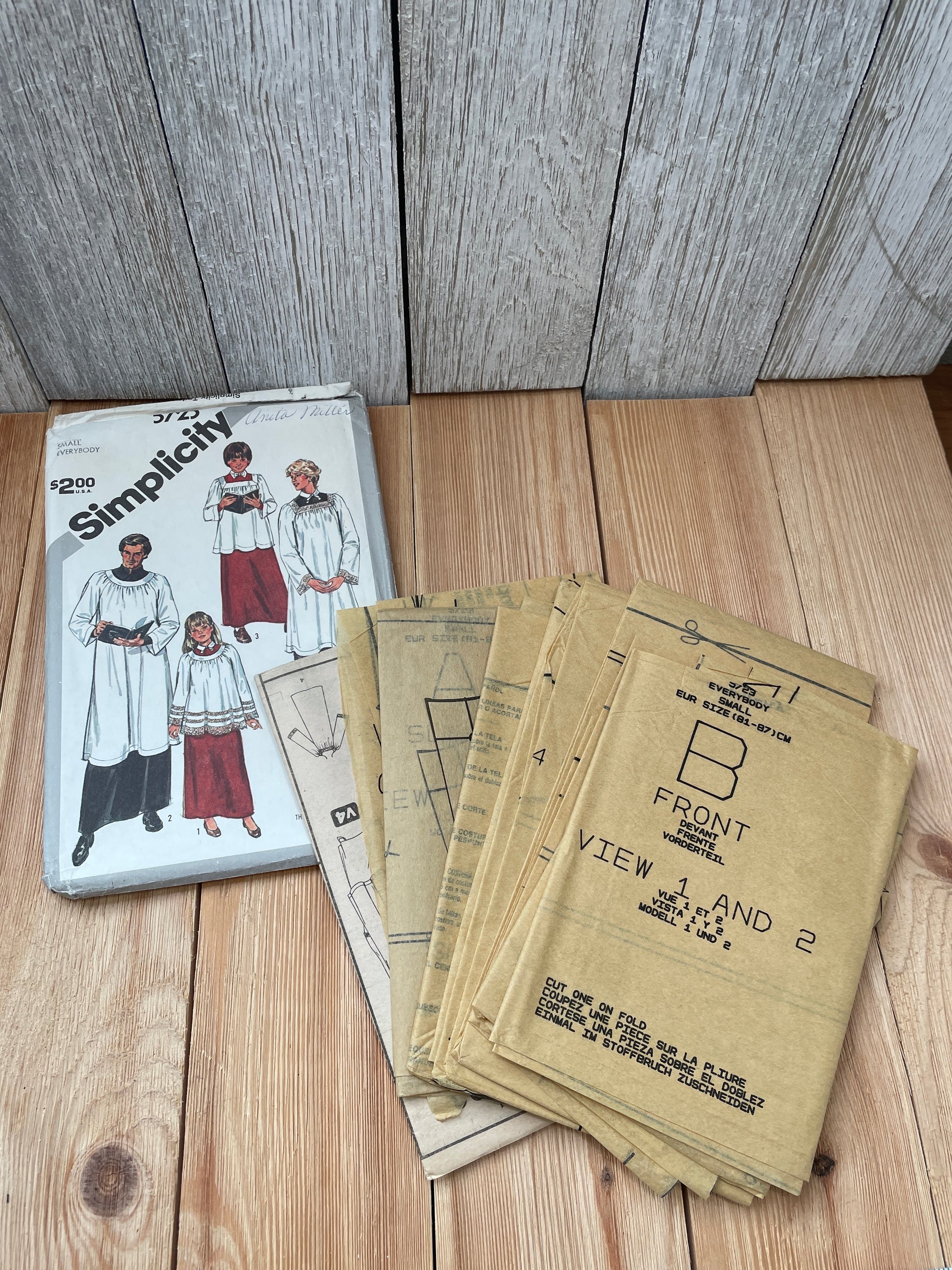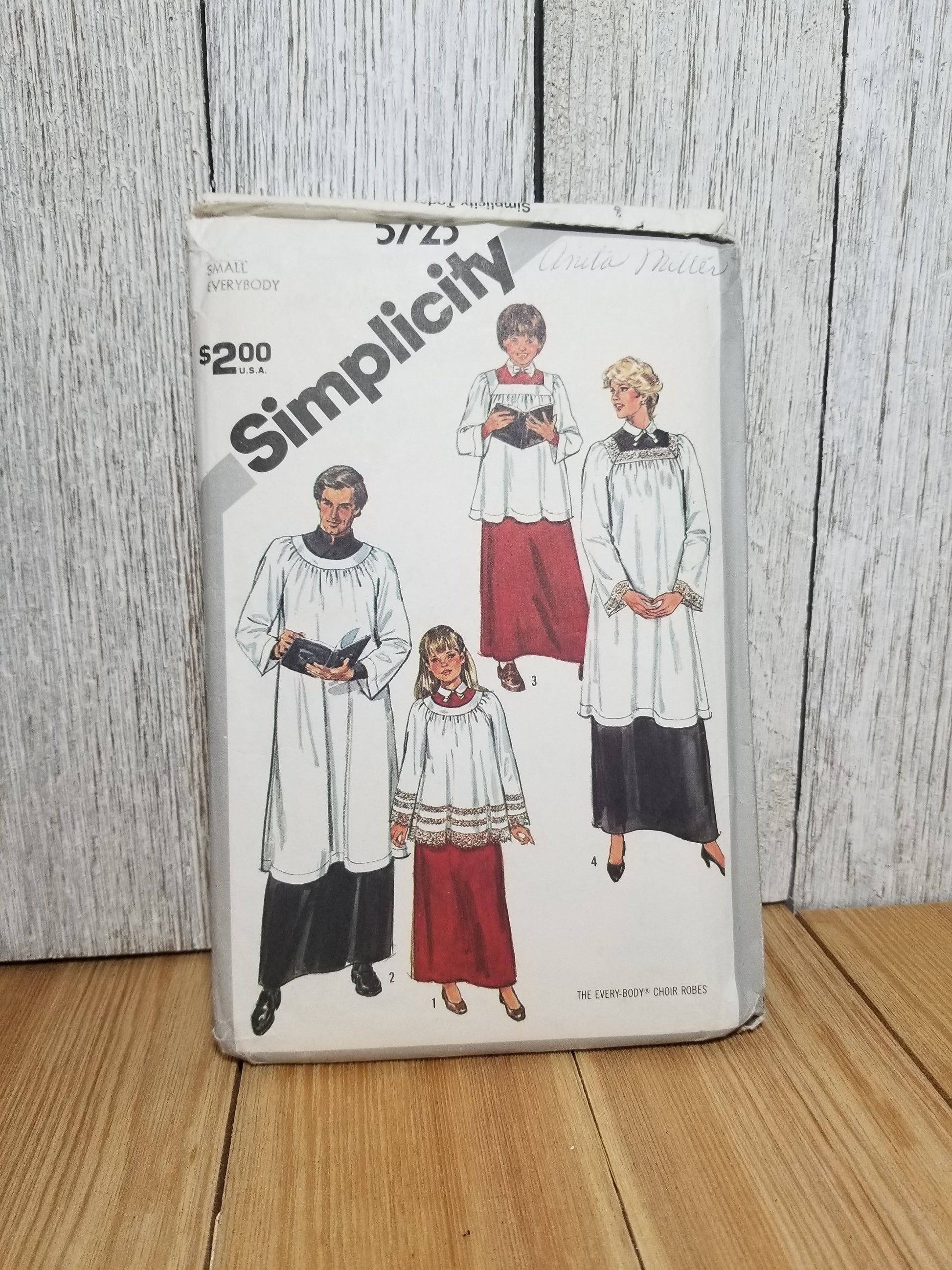 Simplicity 5723 Every-body Choir Robes Costume Pattern Size Sml-Med Complete Halloween