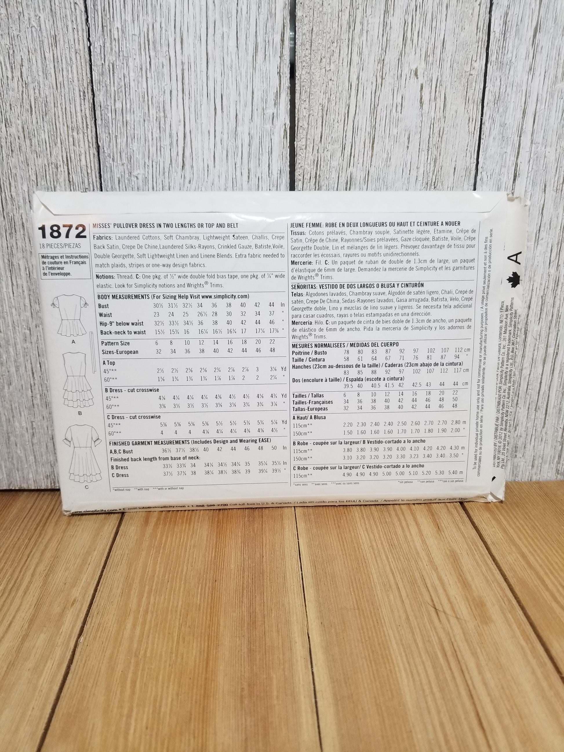 Simplicity 1872 Deep V Wrap Style Tulip Dress Size 6-14 Uncut FF Sewing Pattern CYNTHIA ROWLEY