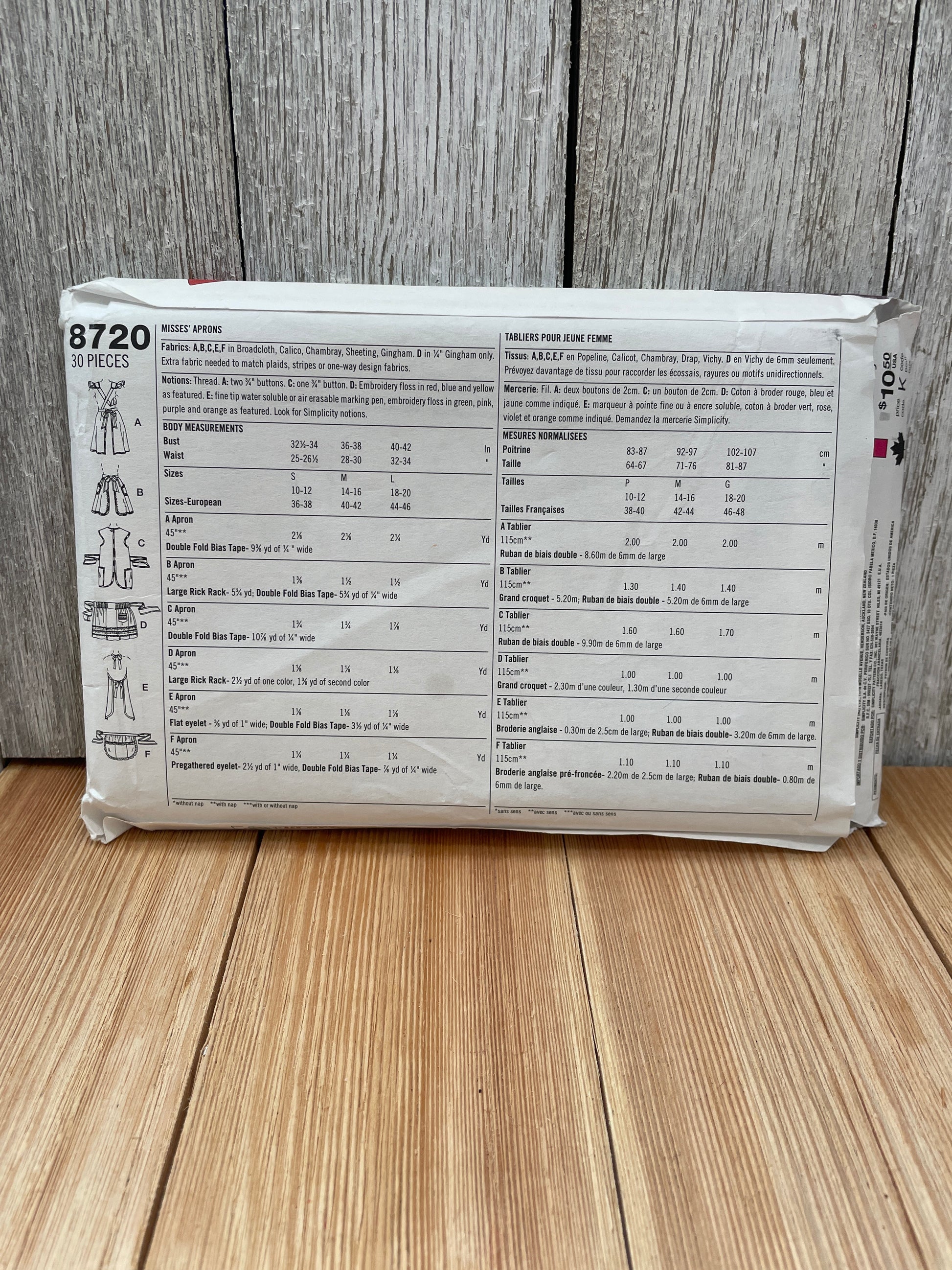 Simplicity 8720 Retro Aprons Costume Pattern Size 10- 20 UNCUT FF Halloween