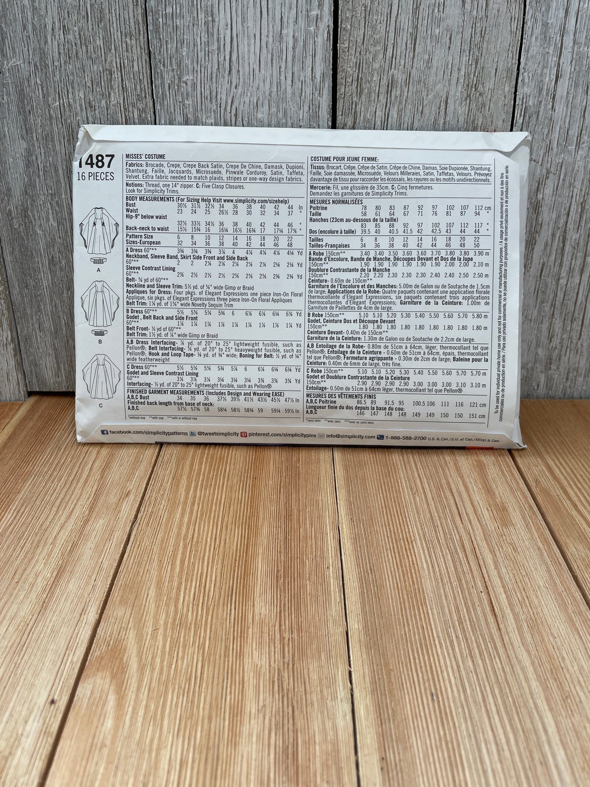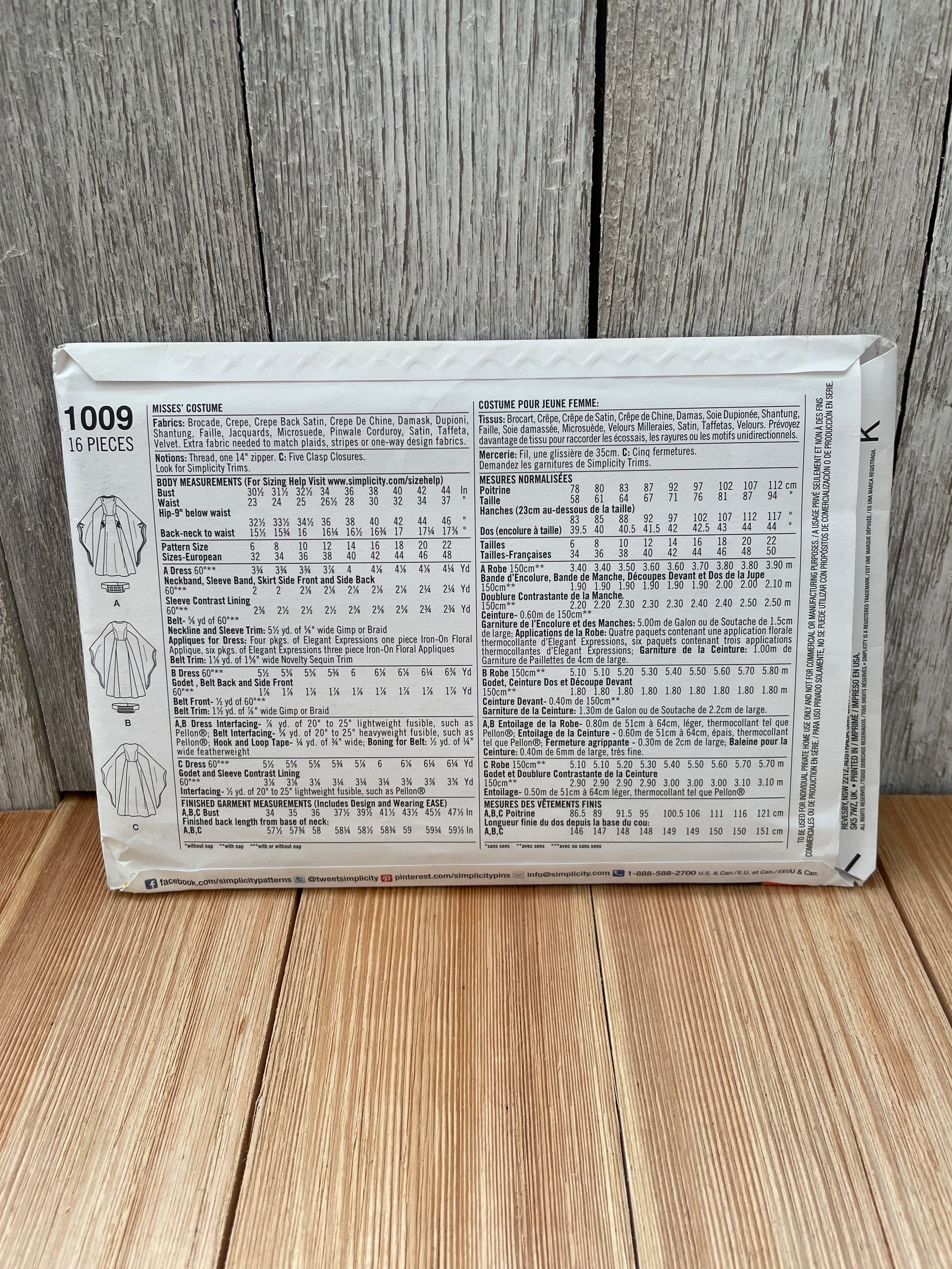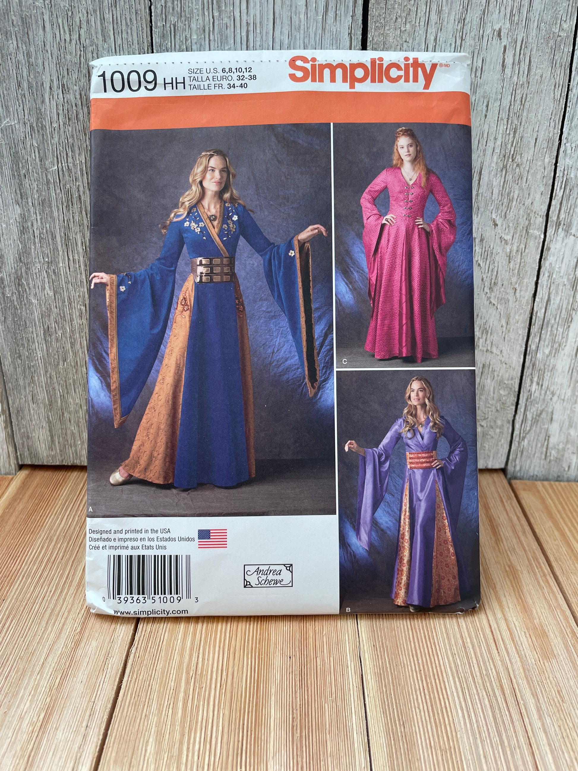 Simplicity 1487 1009 Medieval Renaissance Cosplay Fantasy Gown Cersei Costume Pattern Size 6-12 UNCUT FF Halloween