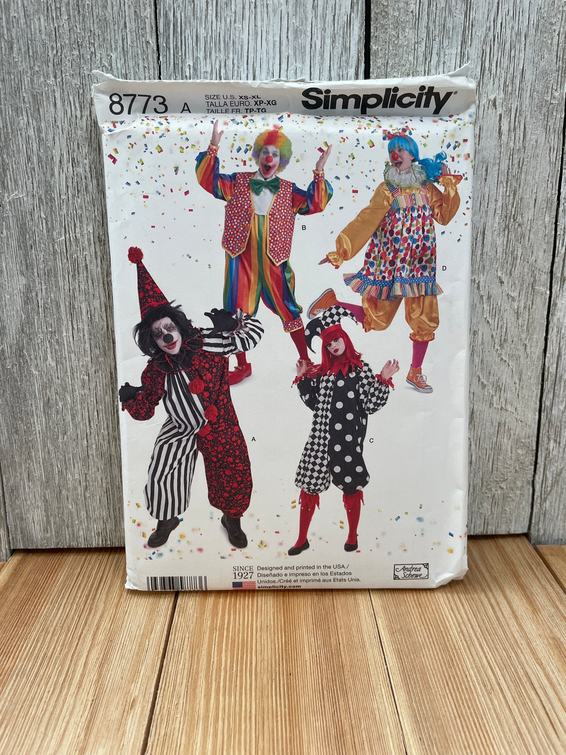 Simplicity 8773 Happy Clown Scary Clown Costume Pattern Size XS-XL UNCUT FF Halloween