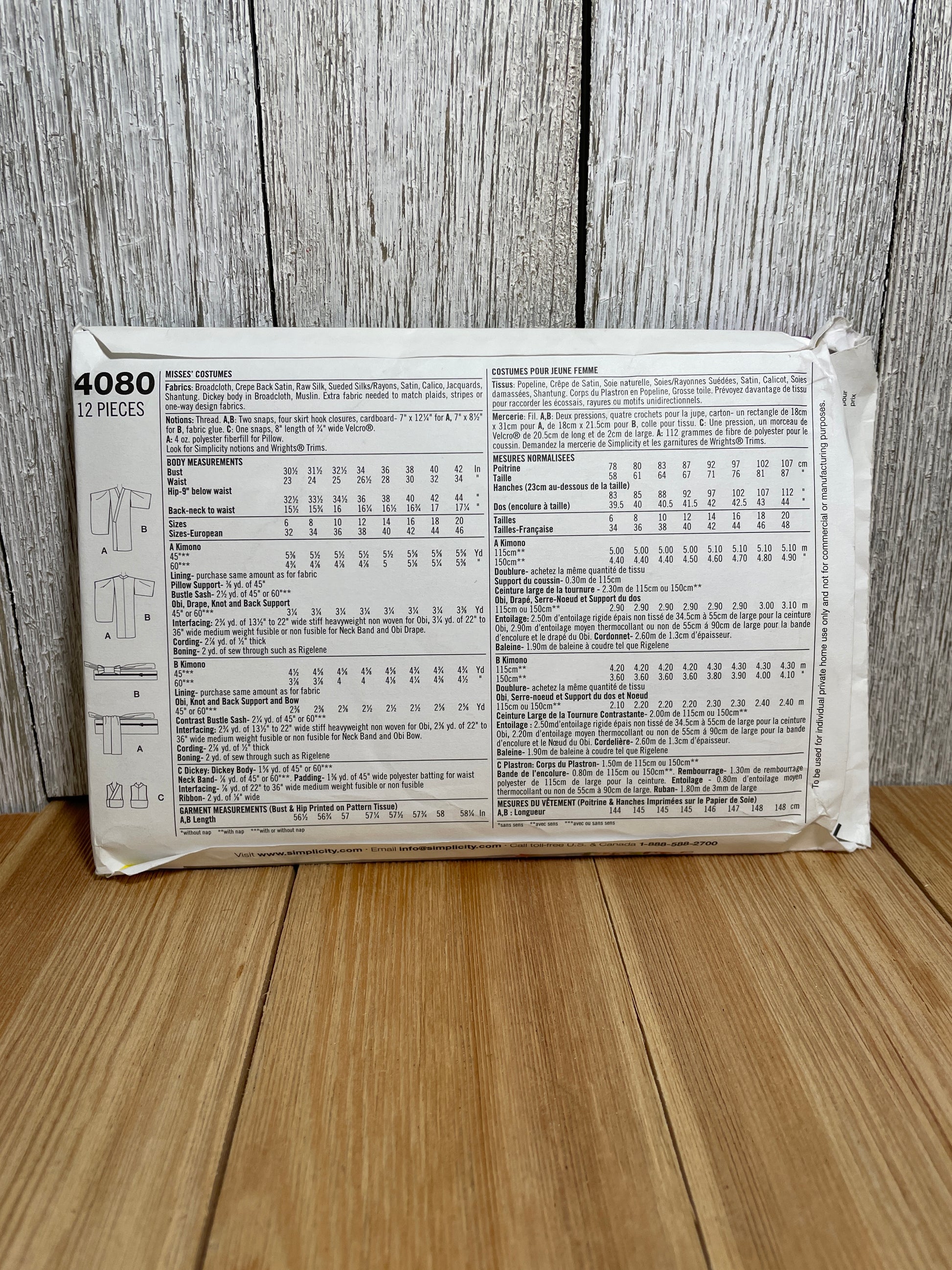 Simplicity 4080 Traditional Japanese Geisha Kimono Dress Size 6-12 Pattern UNCUT FF Halloween Costume