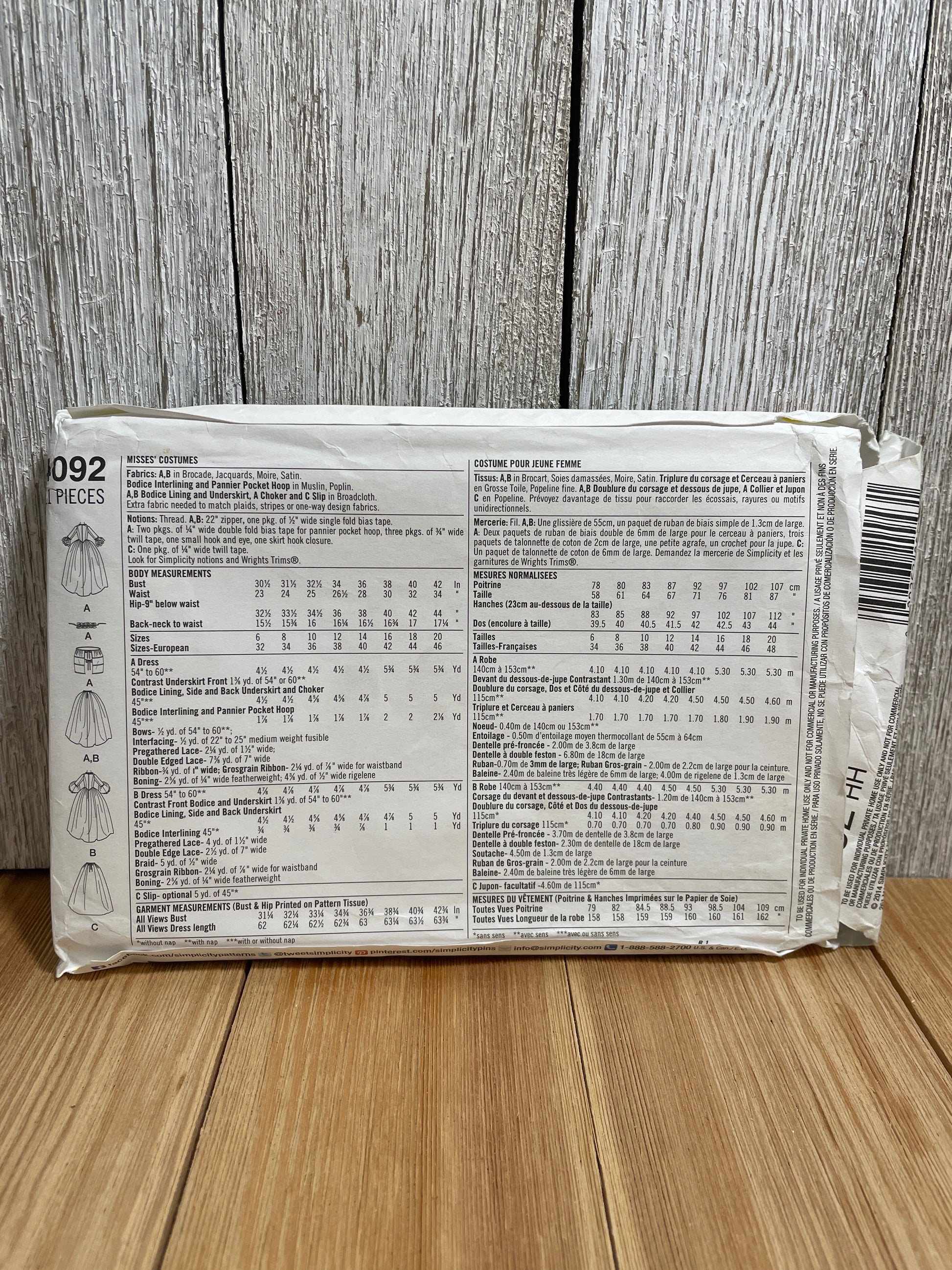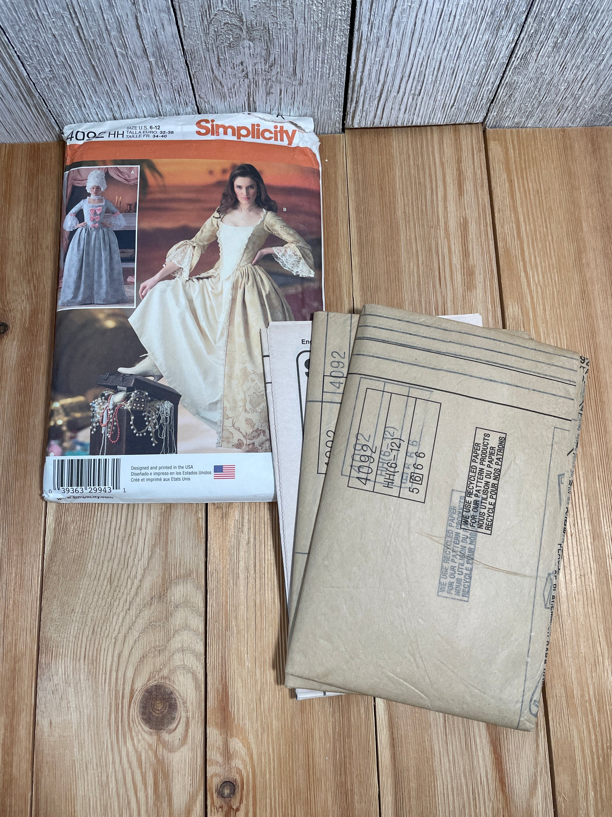 Simplicity 4092 Evening Gown Princess Colonial Dress Size 6-12 Pattern UNCUT FF Halloween Costume