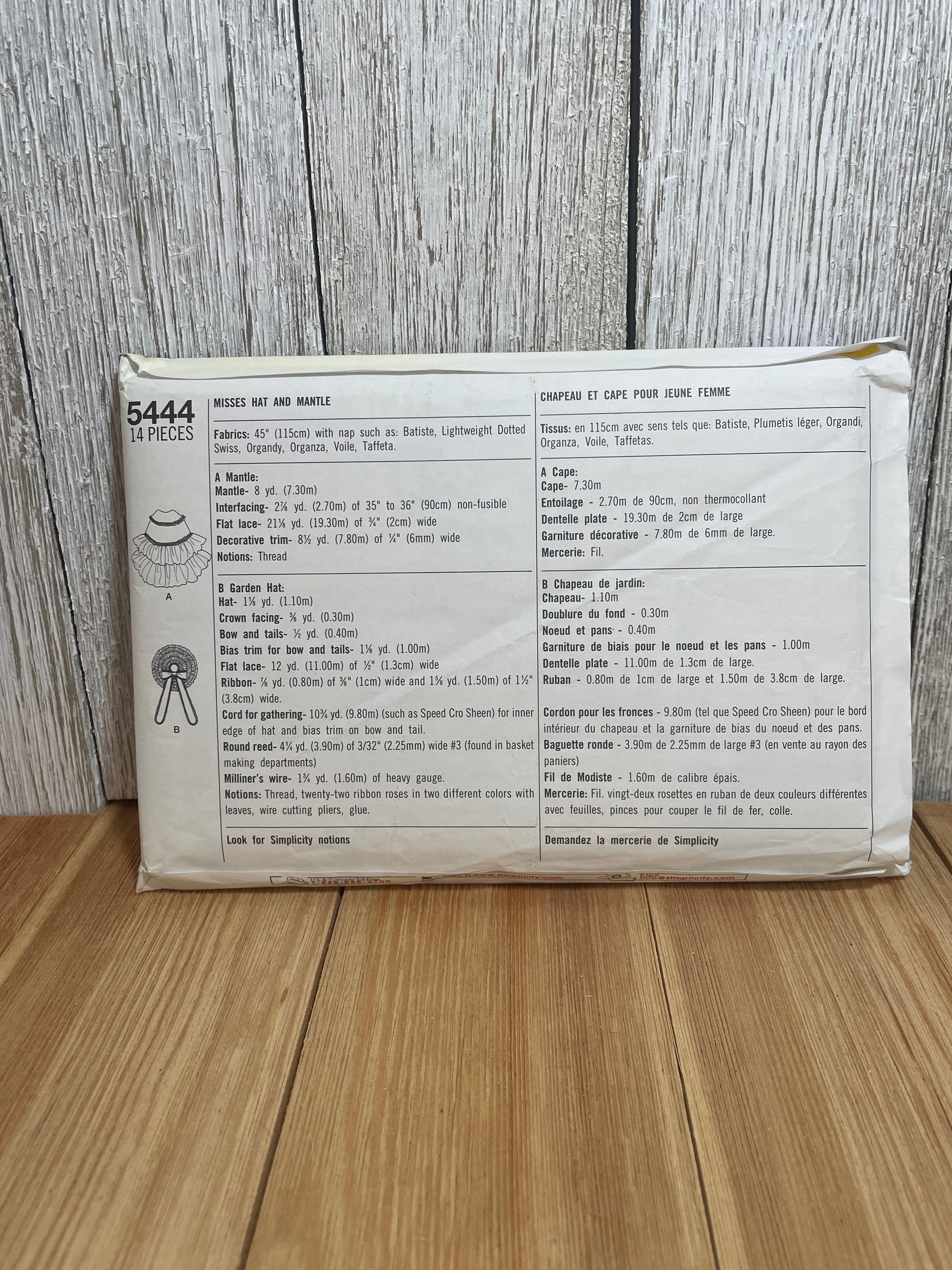 Simplicity 5444 The Fashion Historian Civil War Era Garden Hat and Mantle Pattern Costume One Size UNCUT FF Halloween