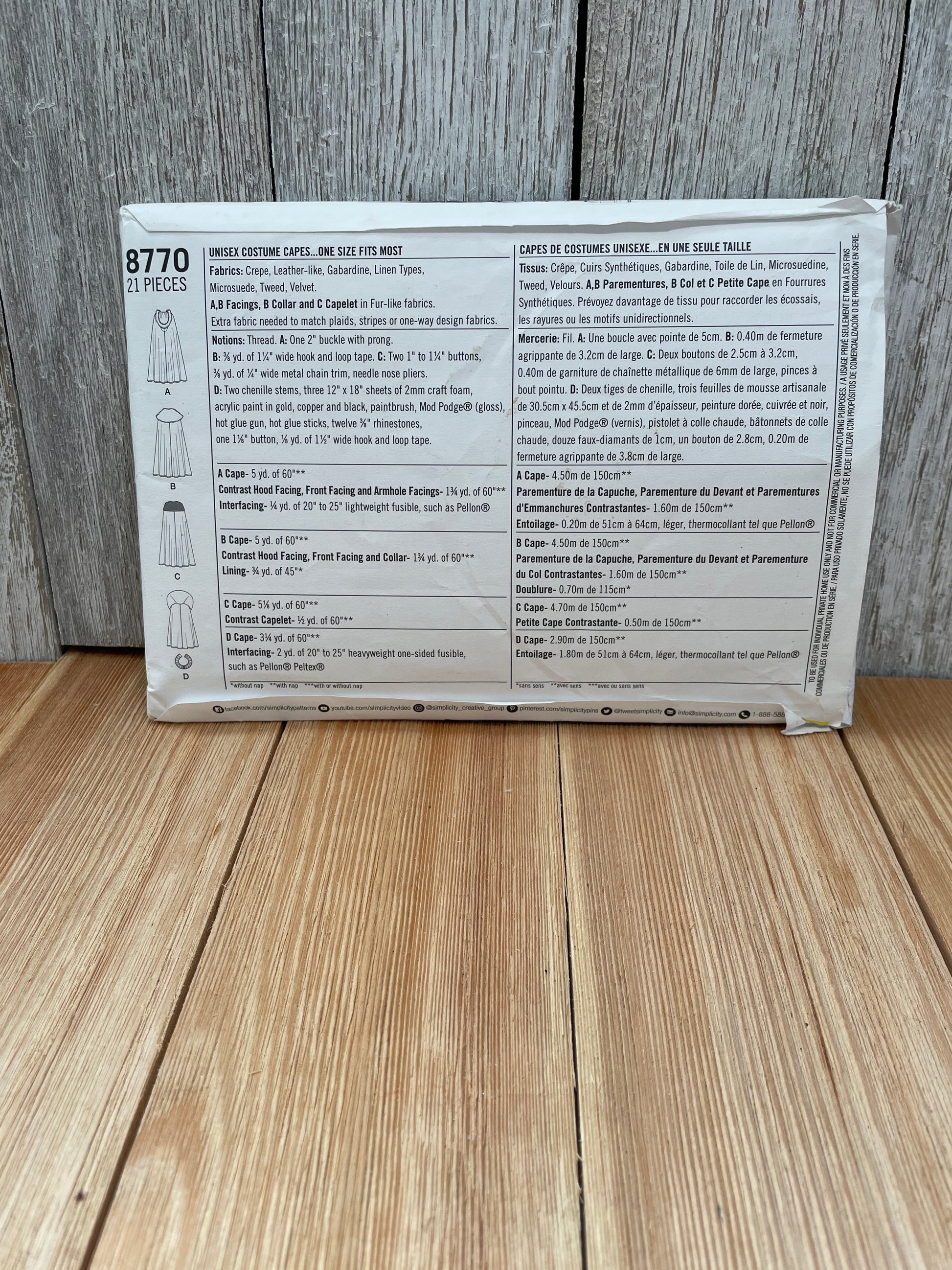 Simplicity 8770 Winter Cosplay Cape Lord of the Rings Costume Unisex Pattern UNCUT FF Halloween
