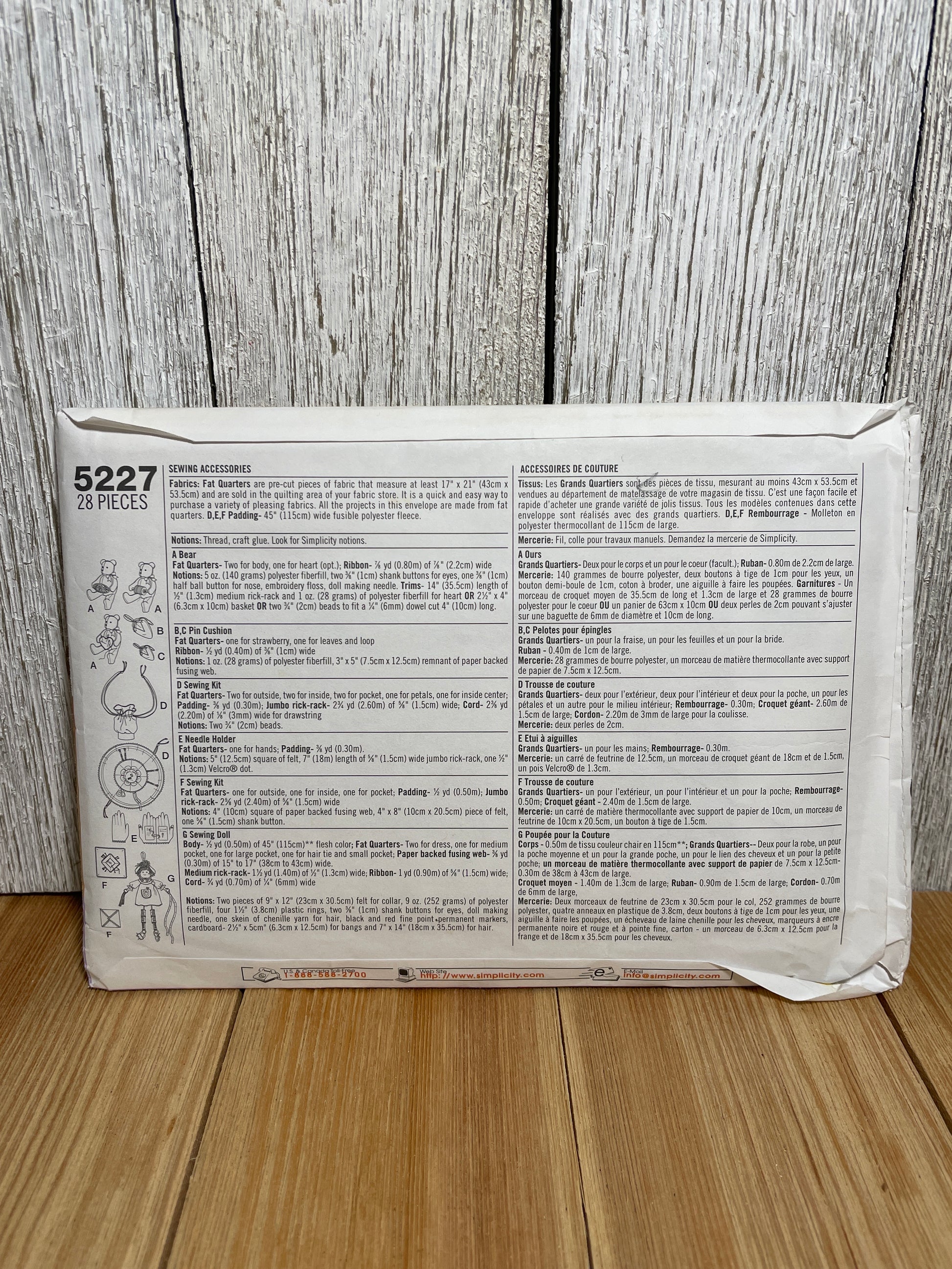 Simplicity Crafts 5227 Sewing Accessories Pin Cushion, Sewing Kit, Needle Holder, Thread Spool One Size Pattern UNCUT FF