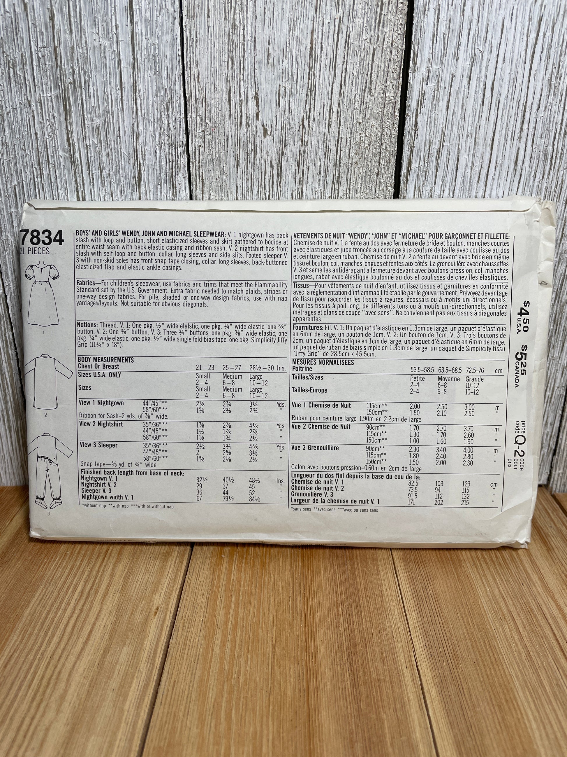 Simplicity 7834 Walt Disney Peter Pan Wnedy John and Michael Costume Size 2-12 Pattern UNCUT FF Halloween Costume