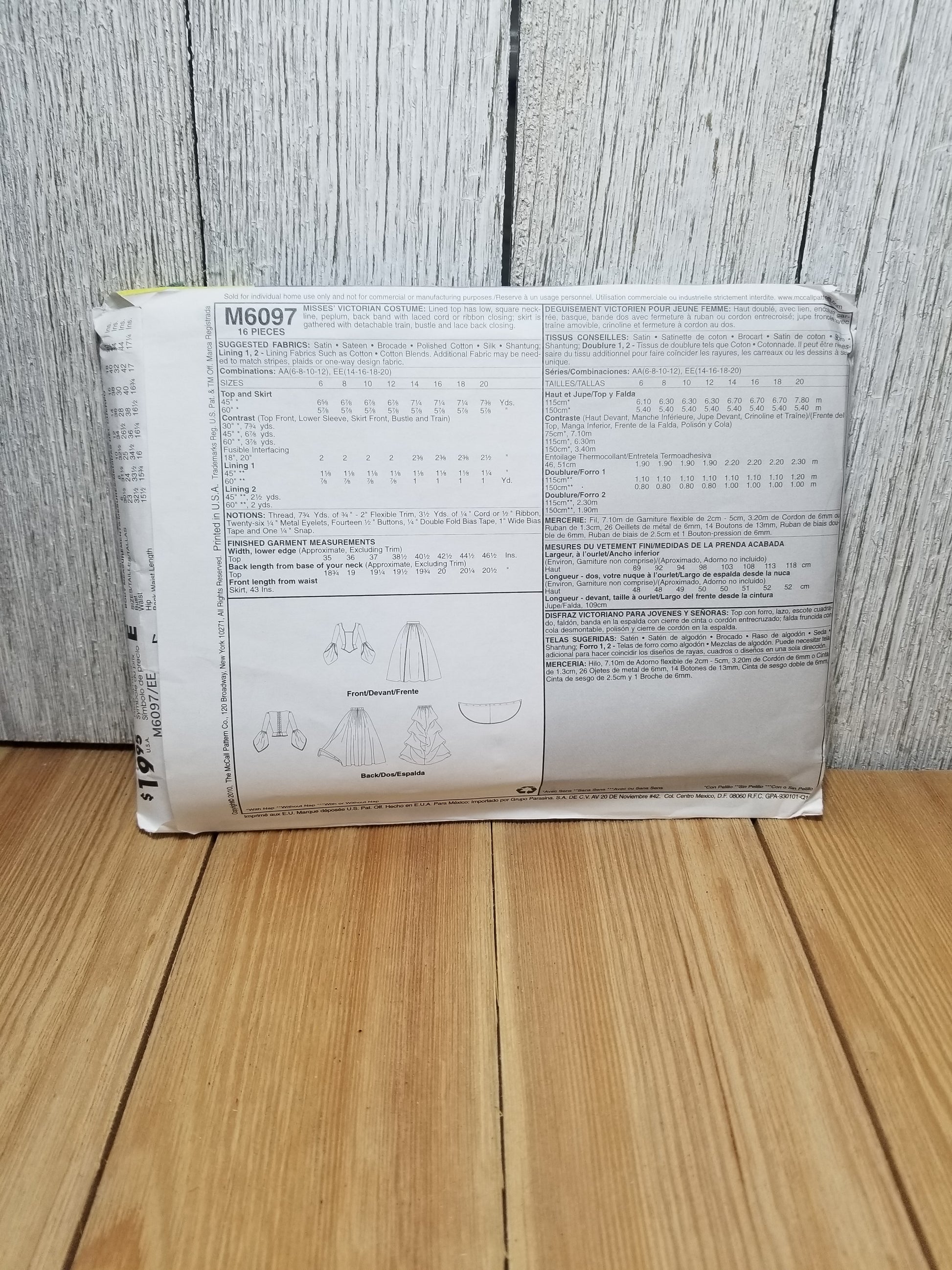 Mccalls M6097 (6097) Misses Victorian Dress Costume Halloween Size 6-12 Pattern Uncut FF