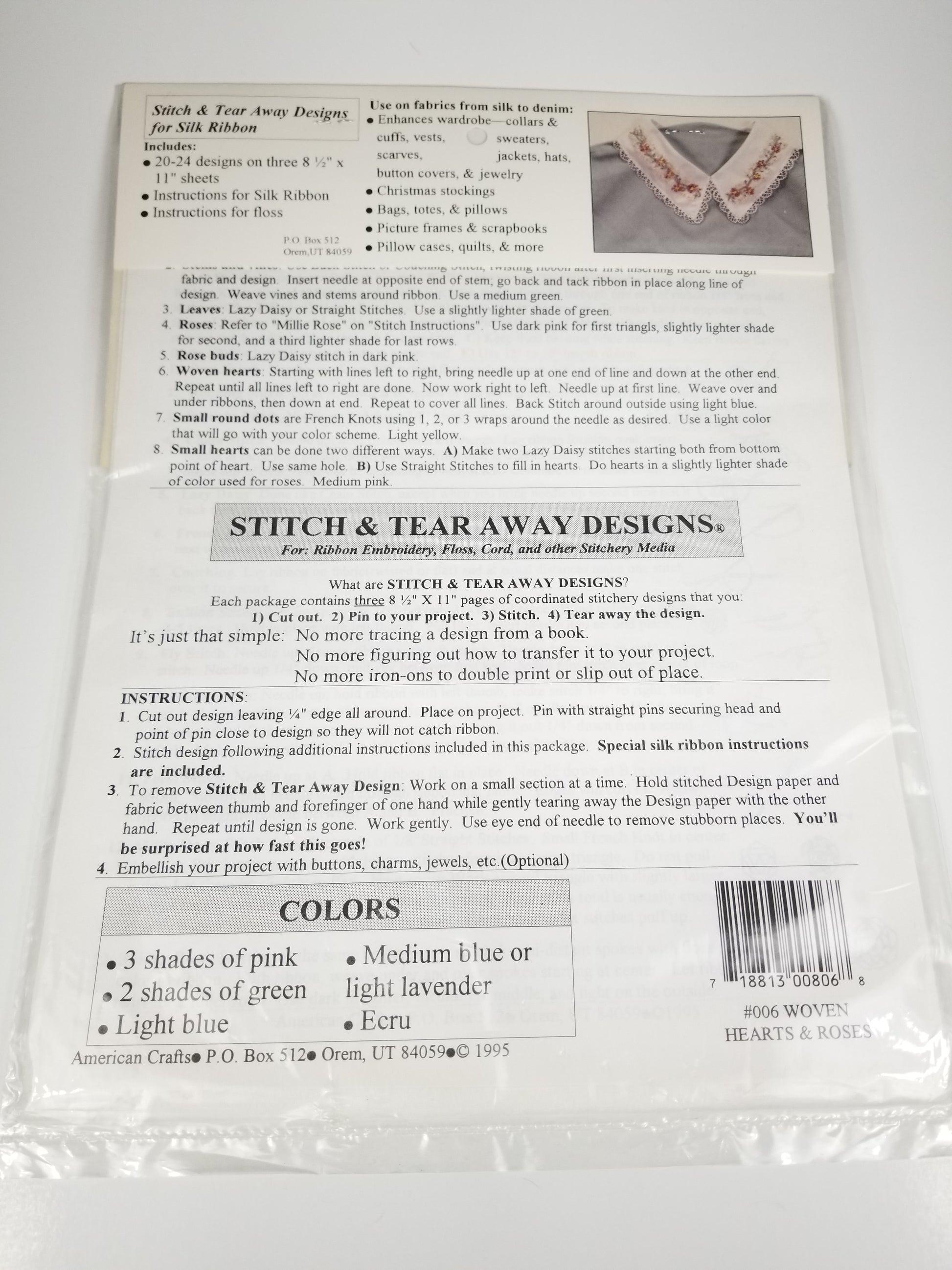 Stitch and Tear Away Designs for Silk Ribbon Woven Hearts and Rose 006 A