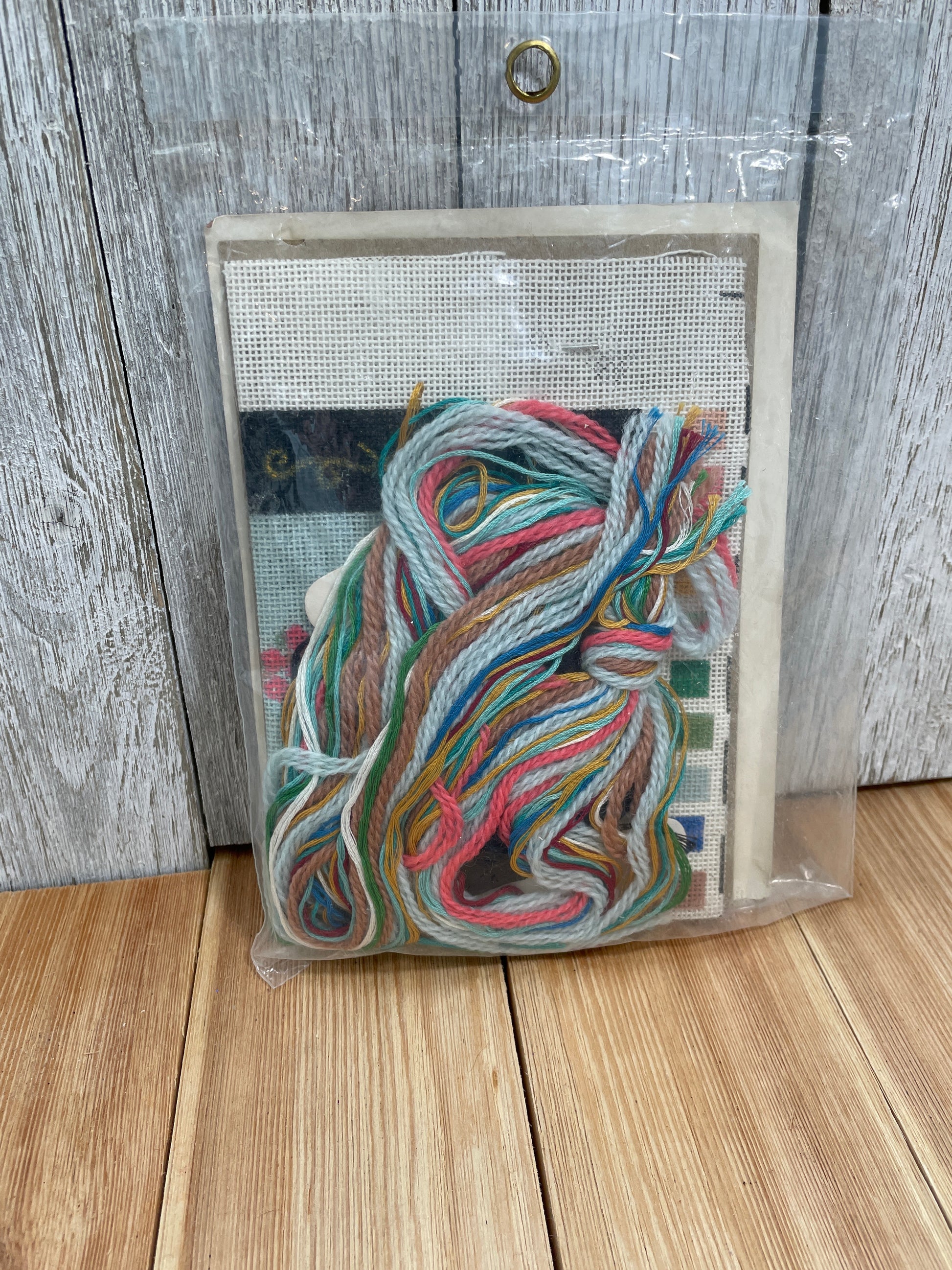 Kit includes: 18 Mesh mono 100% cotton canvas painted in full color, 100% Wool Yarn, 100% Cotton Yarn, Needle, Graph, Instructions