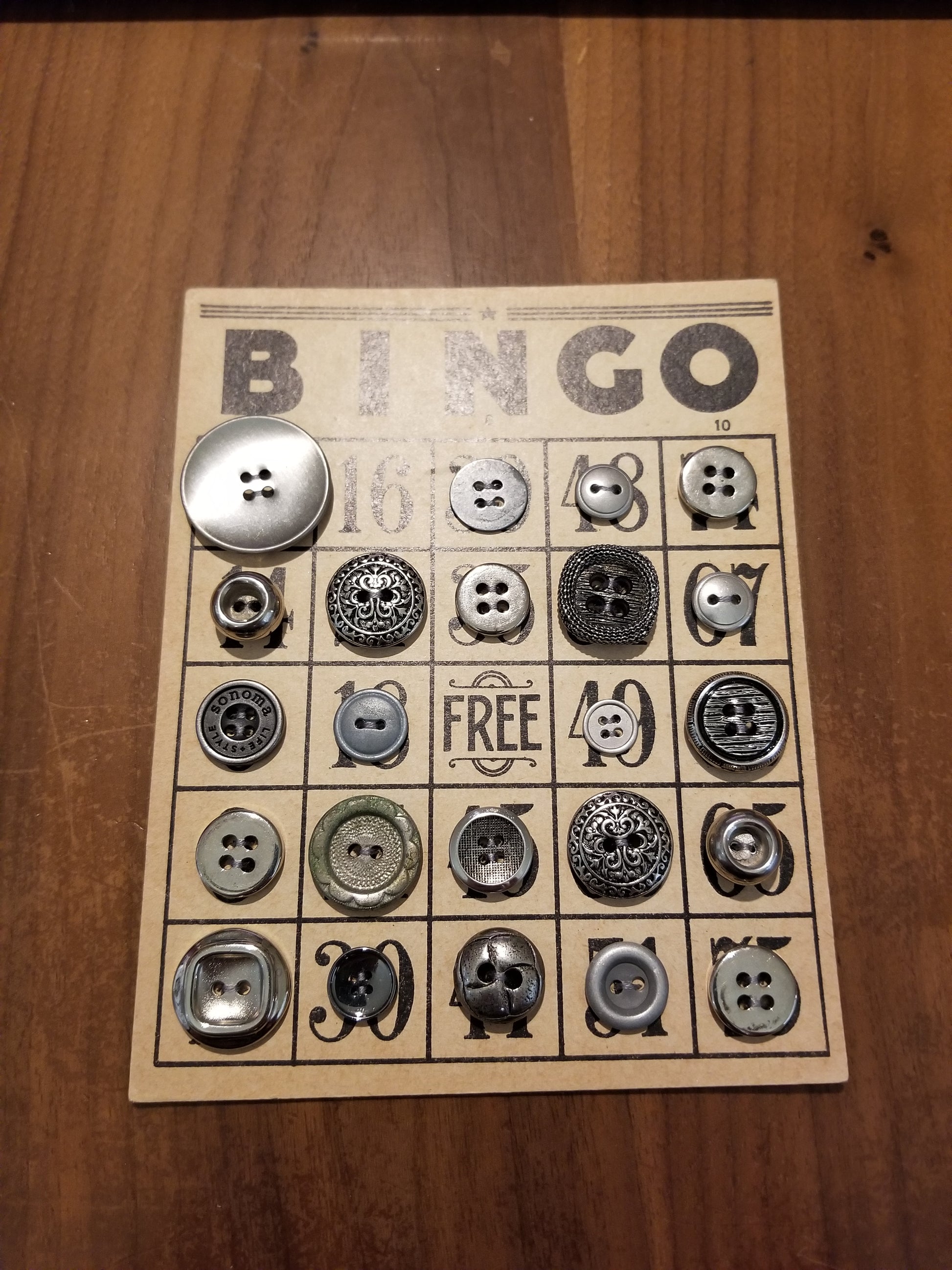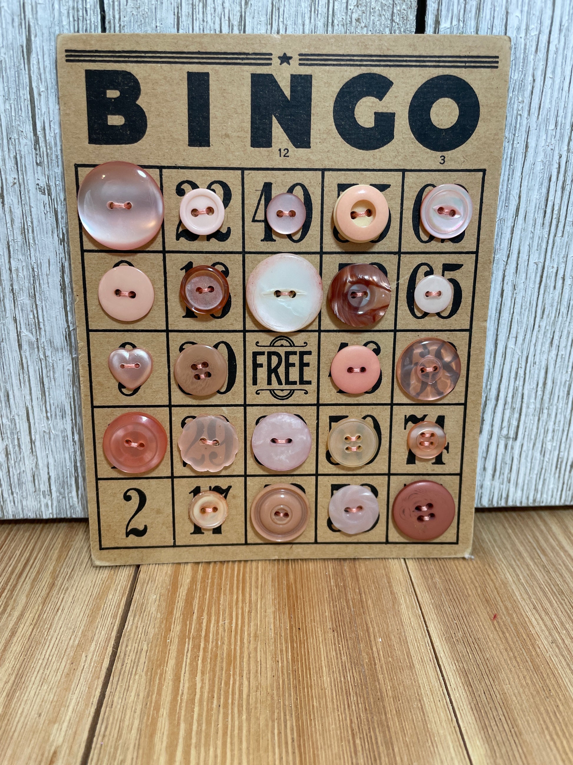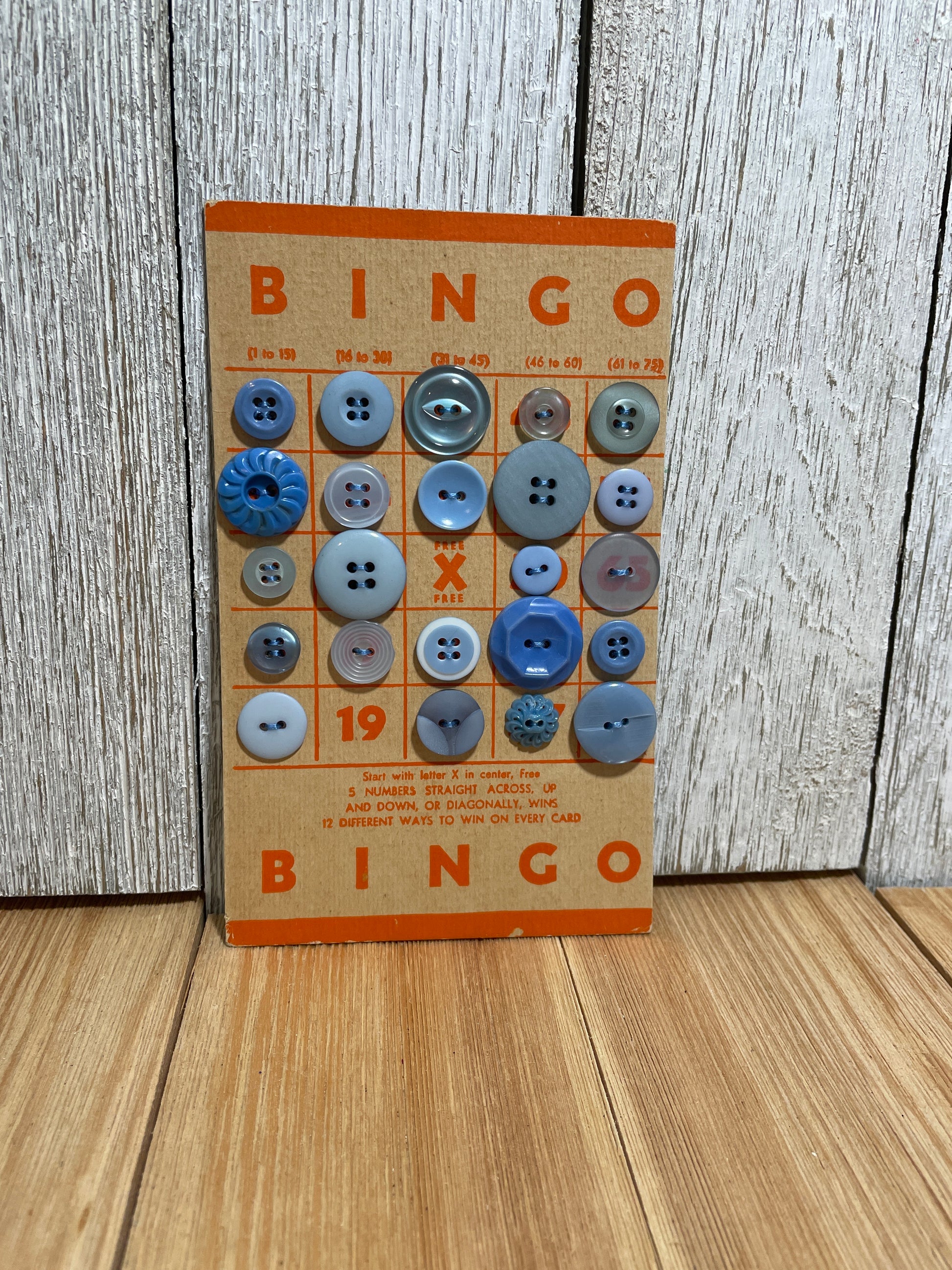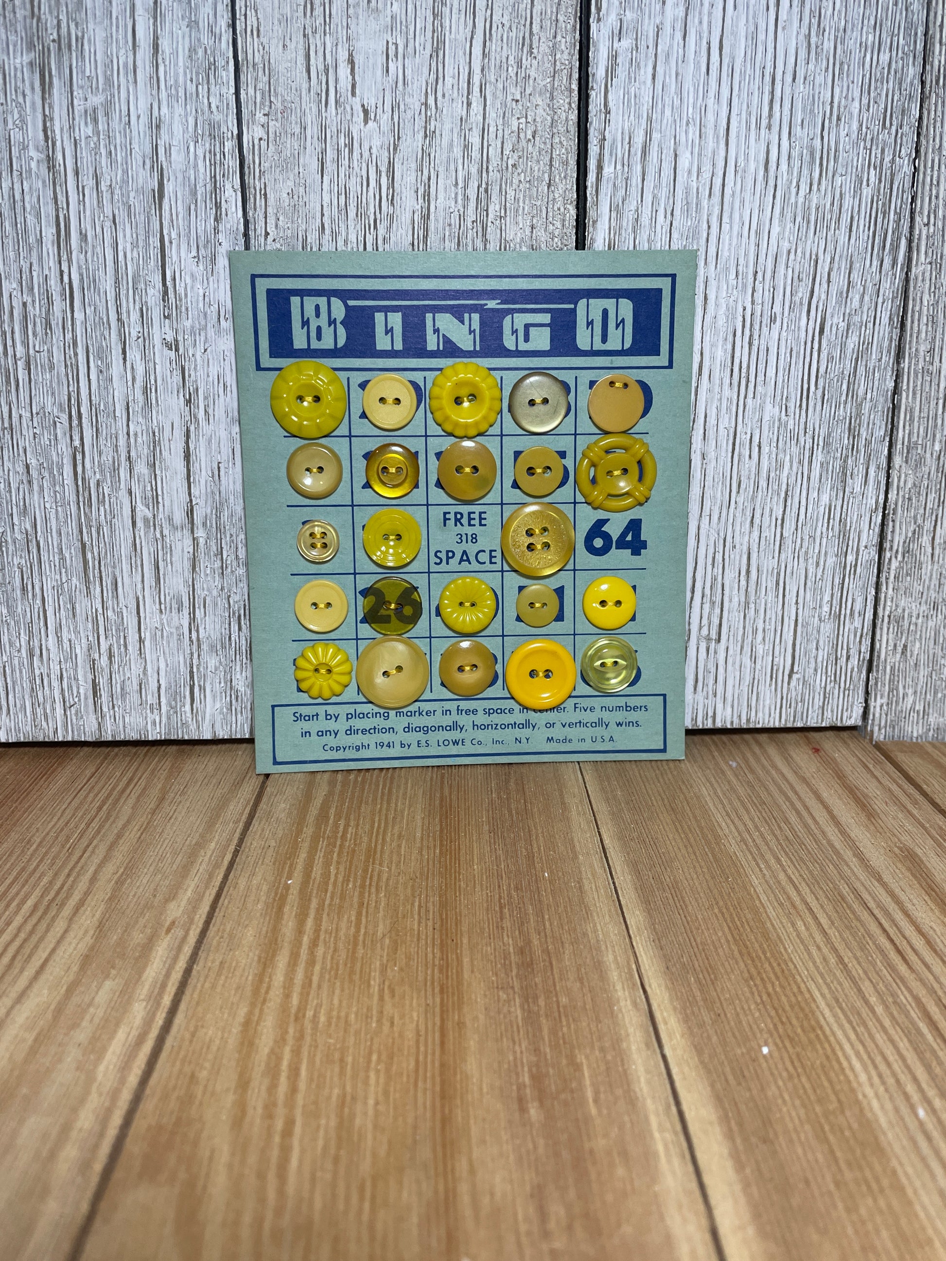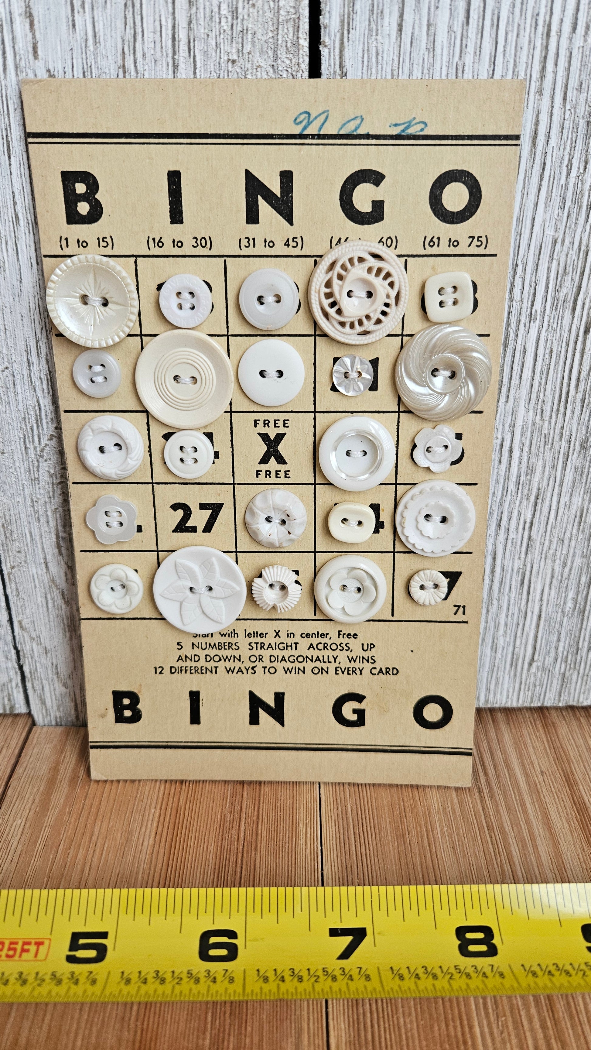Each card comes with 23 vintage and/or antique buttons on a vintage and/or antique bingo card handpicked by our very best button picker! Buttons are attached to the bingo cards with the highest quality embroidery thread, carefully and skillfully sewn on for ease of display.