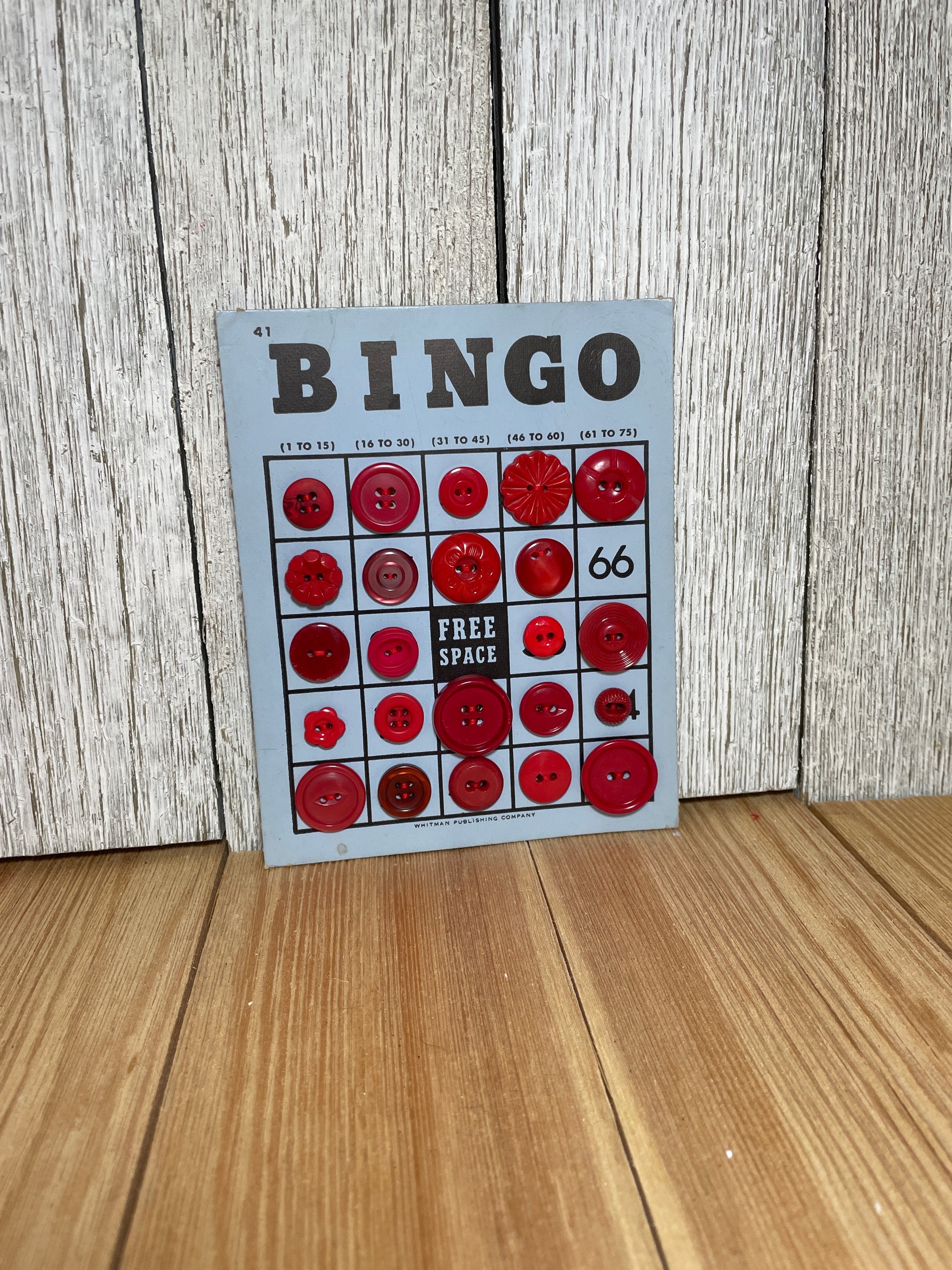 Feeling Lucky? Great display item for you or your bingo babes or squad! Vintage Buttons sewn on Bingo Card Antique quirky cute whimsy