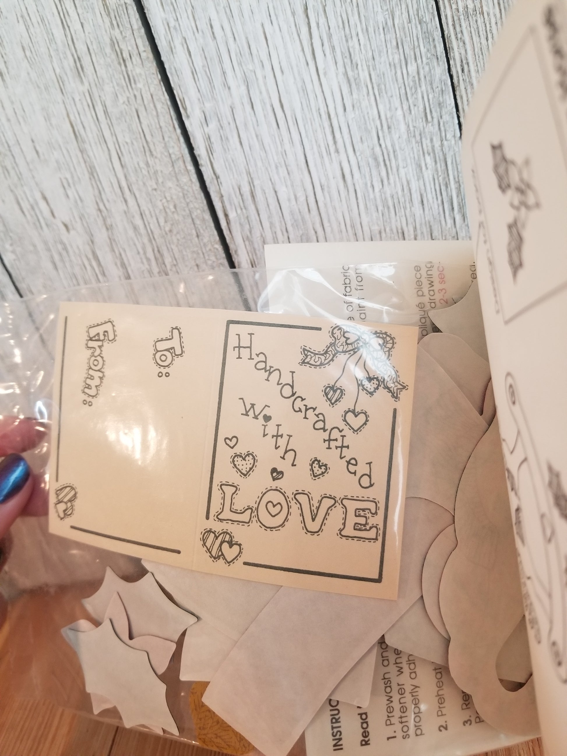 Comes with rocking horse precut applique, Holly back design, and "Handmade with Love" Card