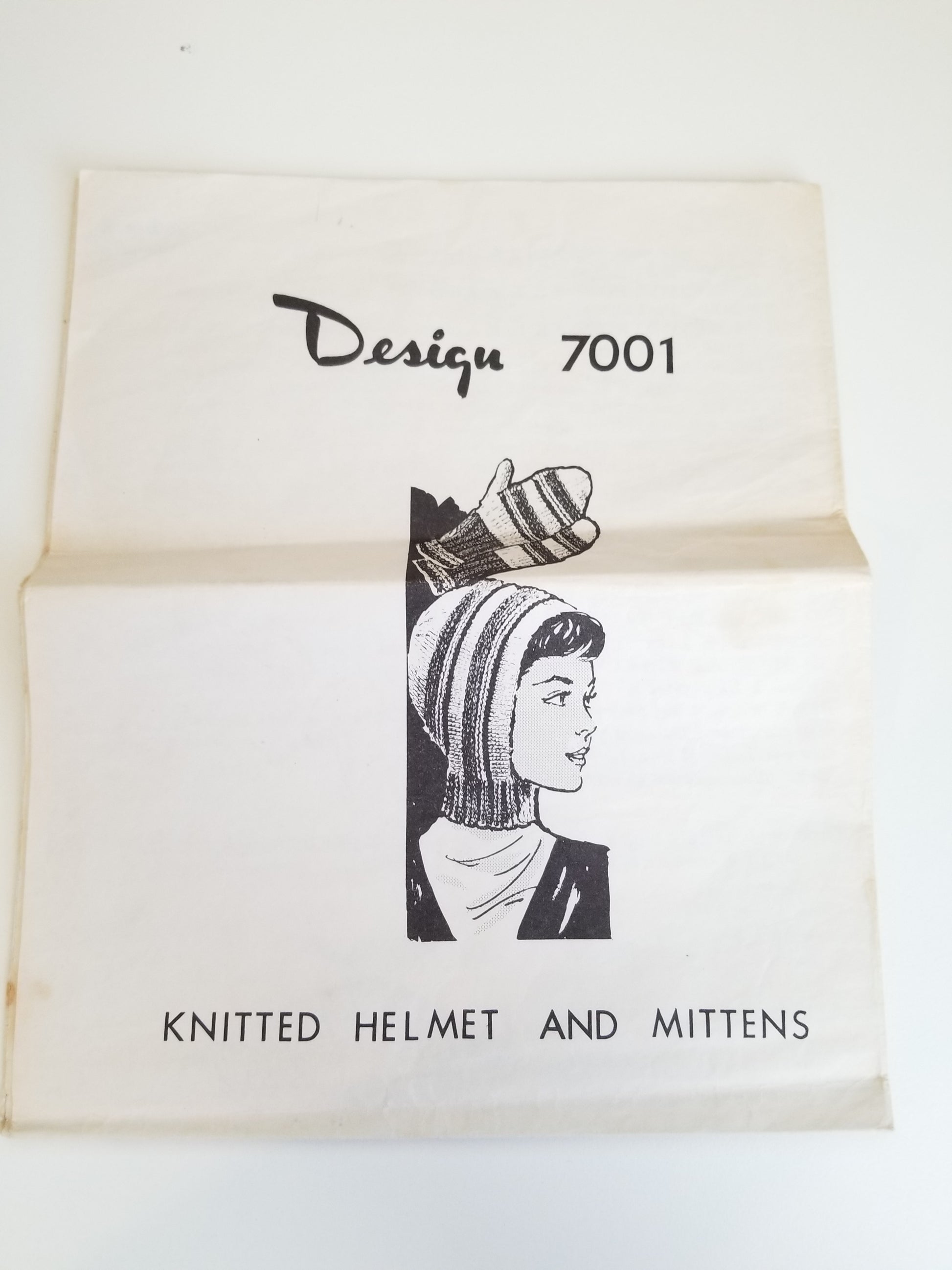 Design 7001 - Knitted Helmet and Mittens (Helmet sm-lg, mittens sm-lg)